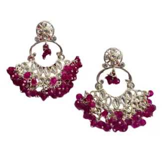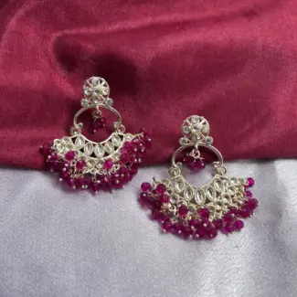 Deep Magenta Beaded Kundan Earrings