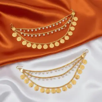 Coin design with White Pearls Ear-chain