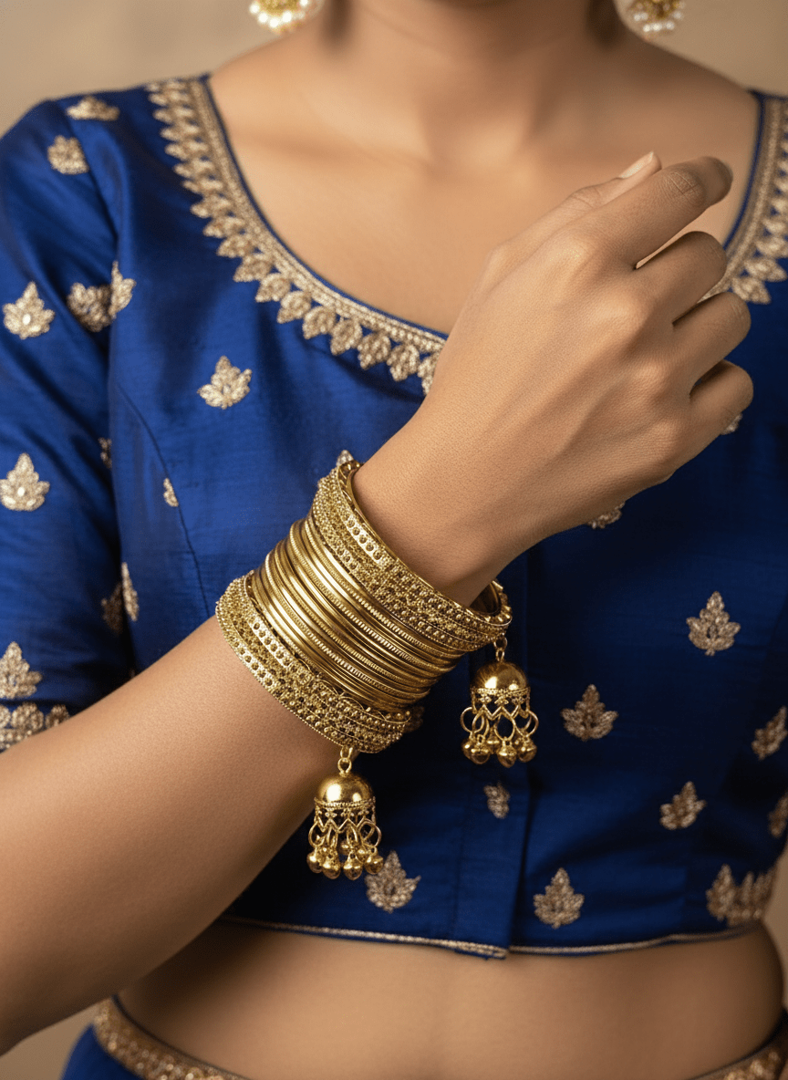 14 Pieces Gold Colored Bangles with Jhumka Tassels