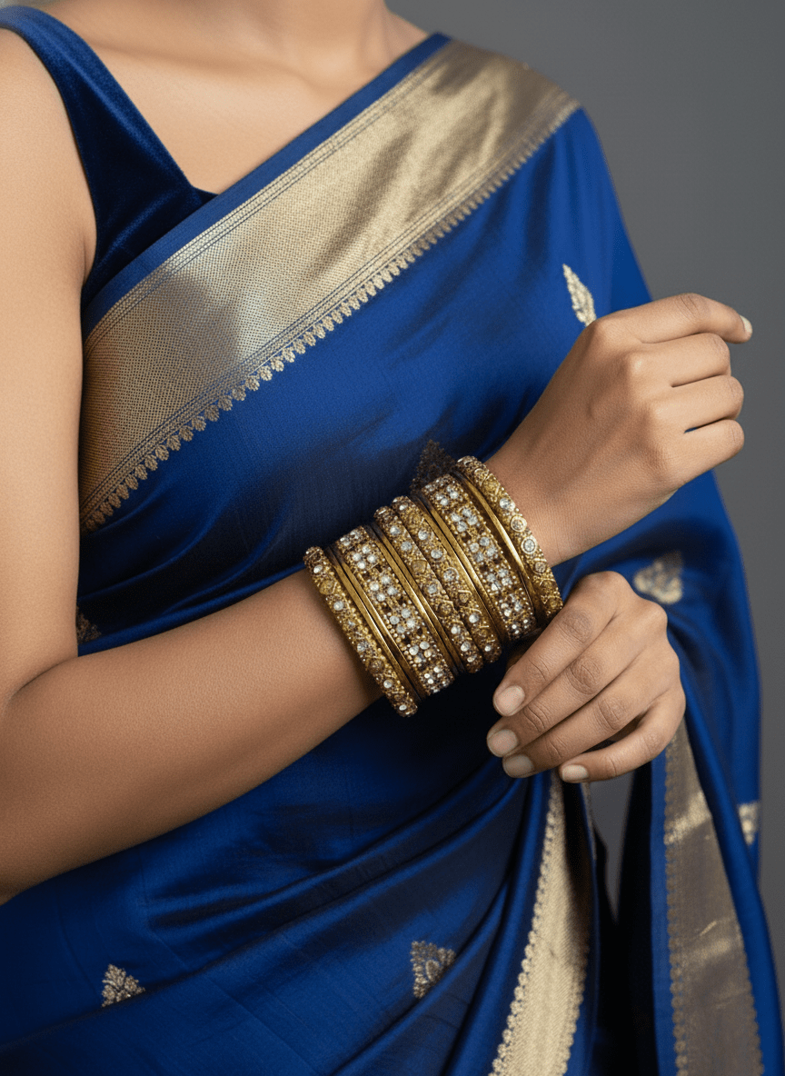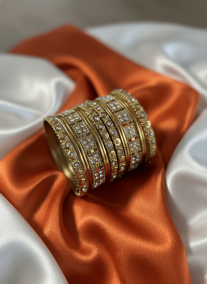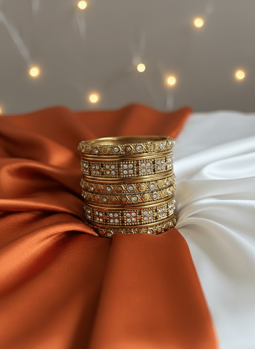 14 Pieces Gold Colored with White stone Bangles