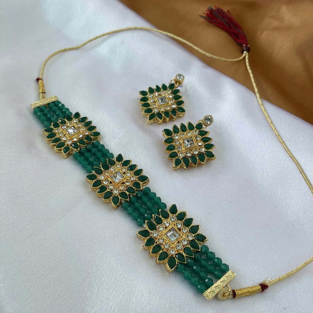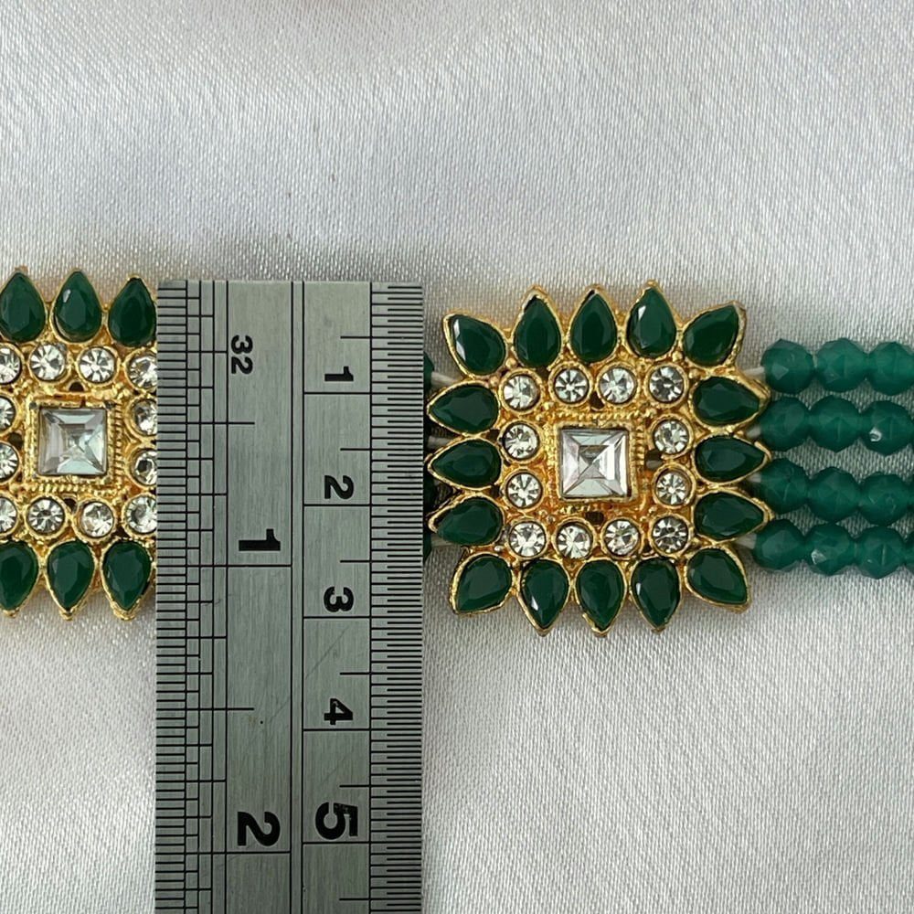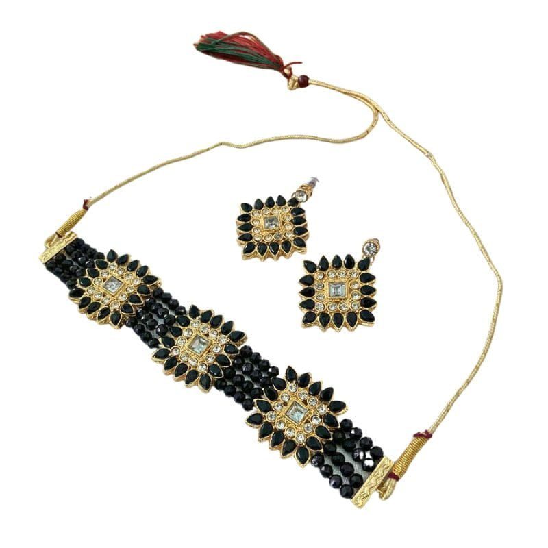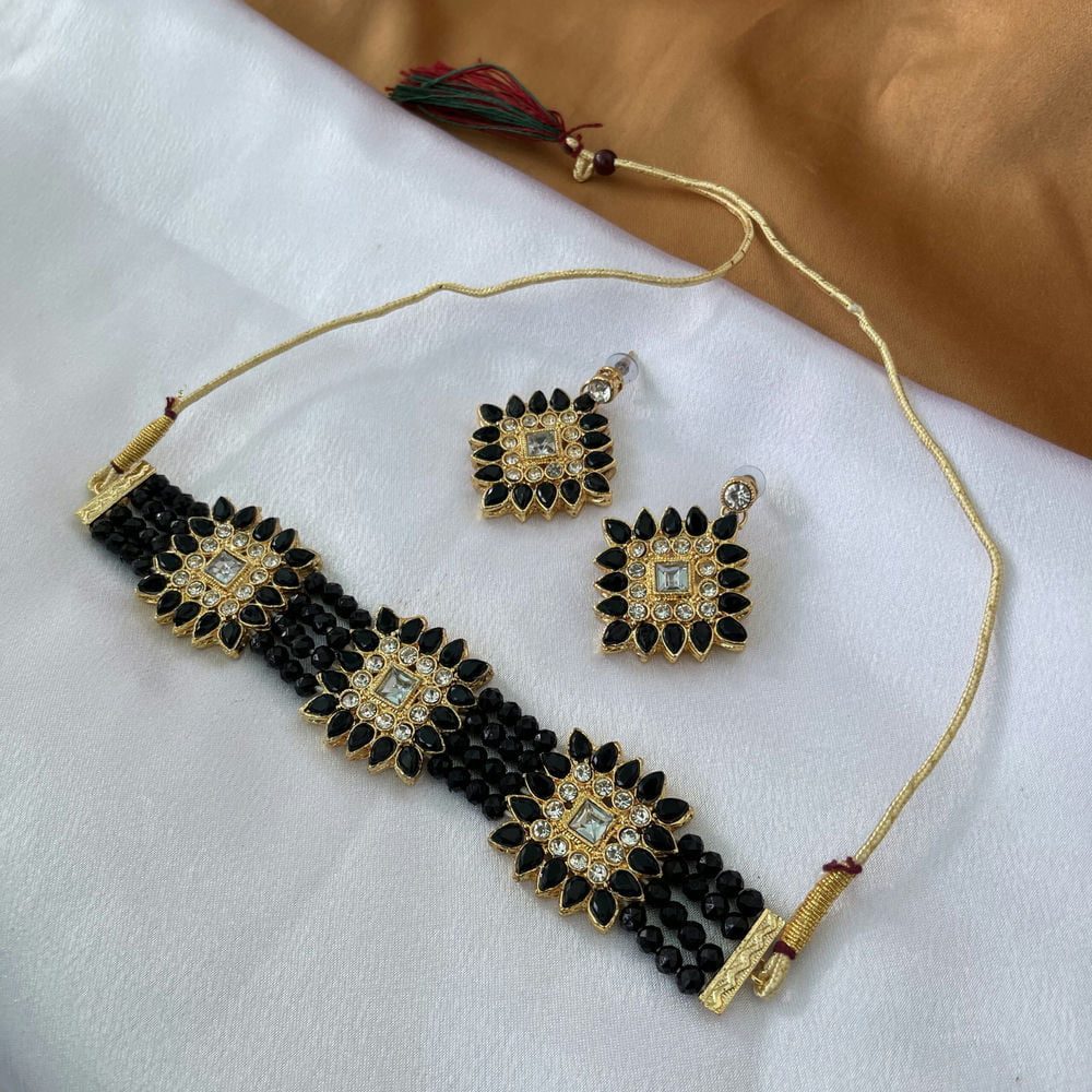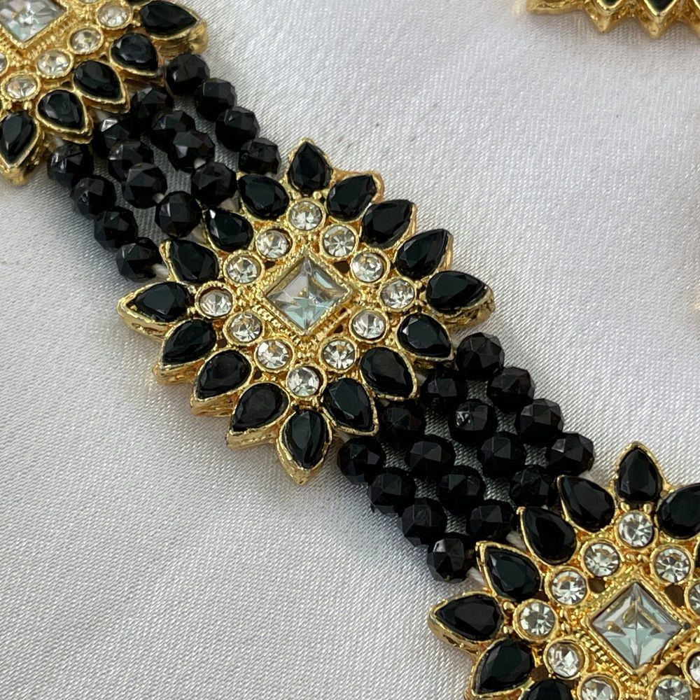 Gold Toned Studded Kundan Black Beads Squared shaped Choker Necklace