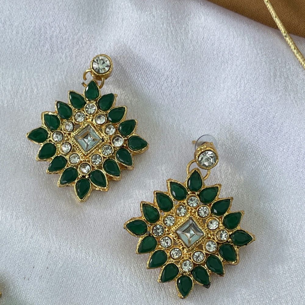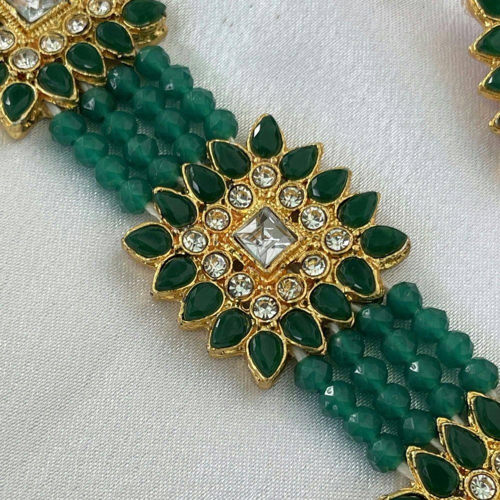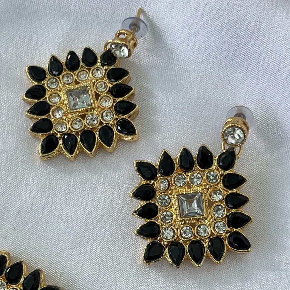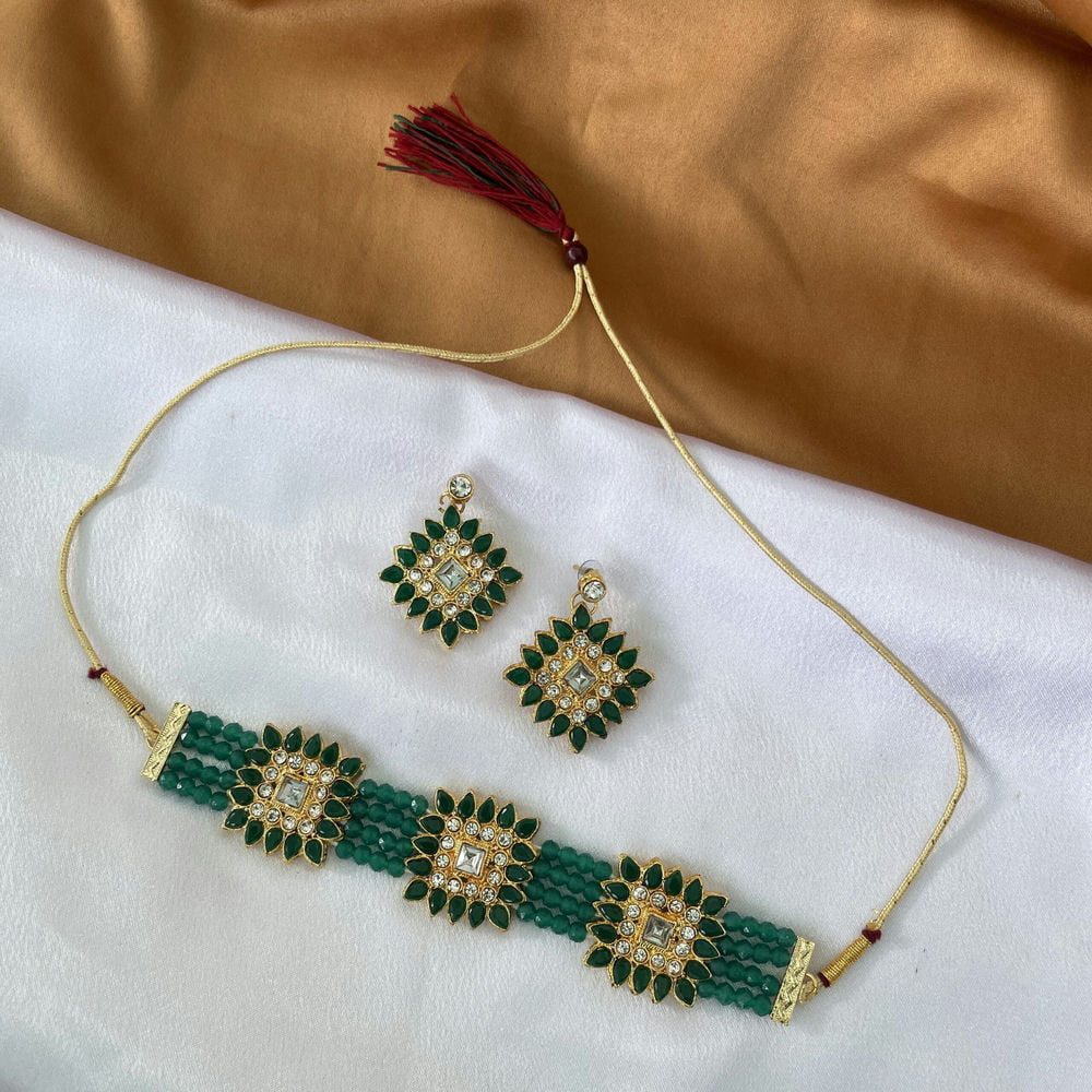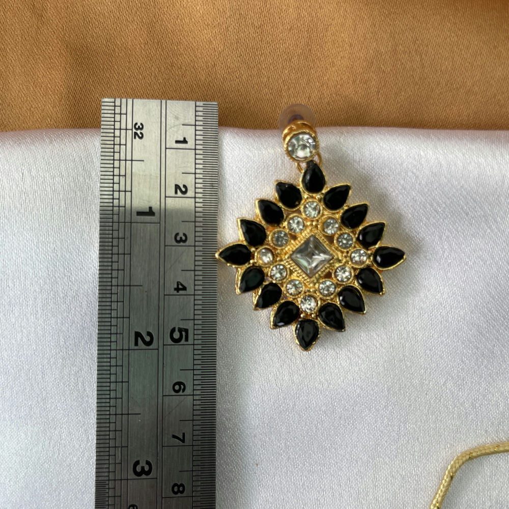 Gold Toned Studded Kundan Black Beads Squared shaped Choker Necklace