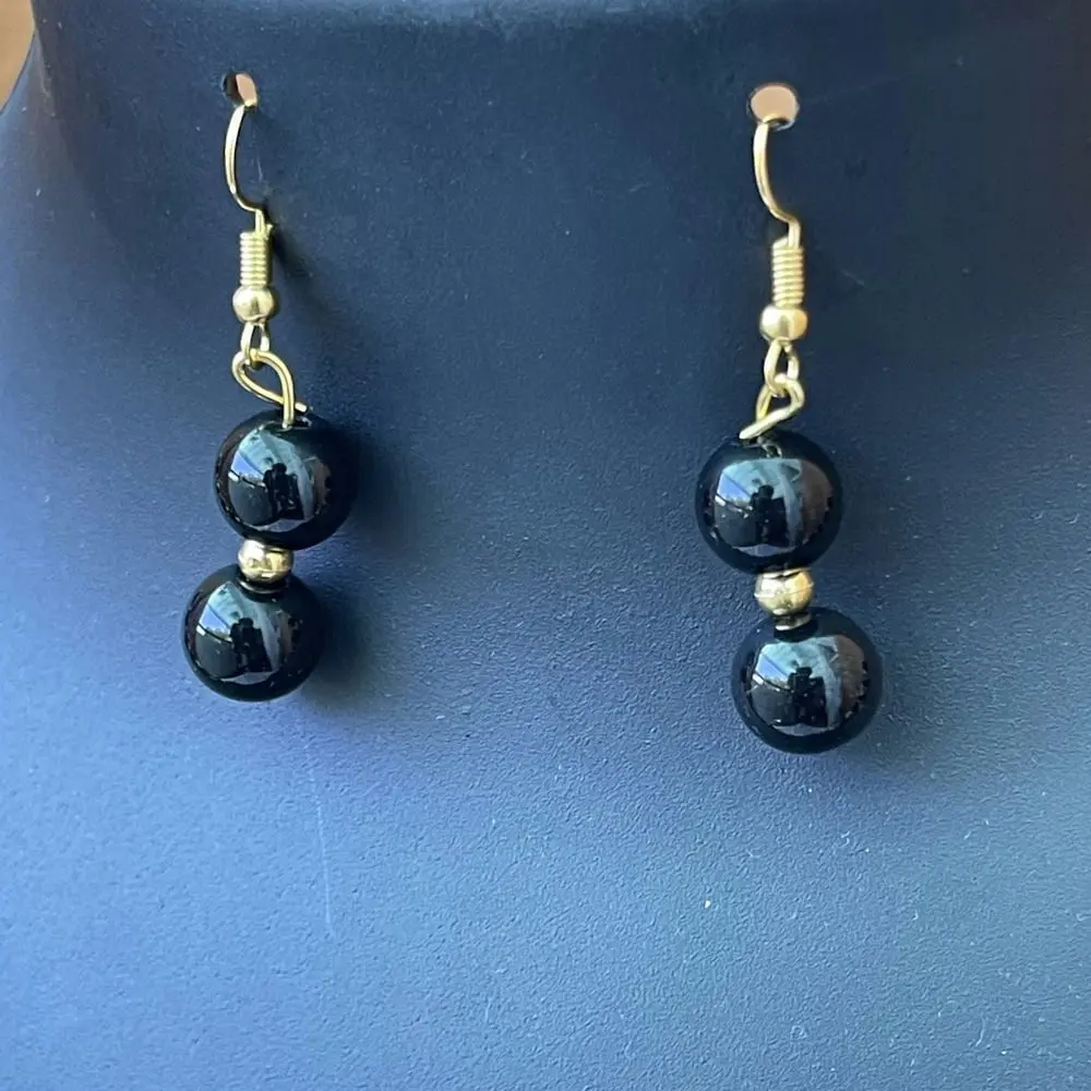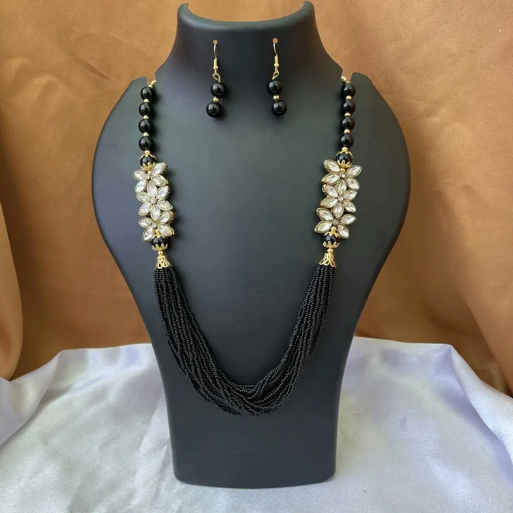 Black Beaded Saree Maala with Earrings