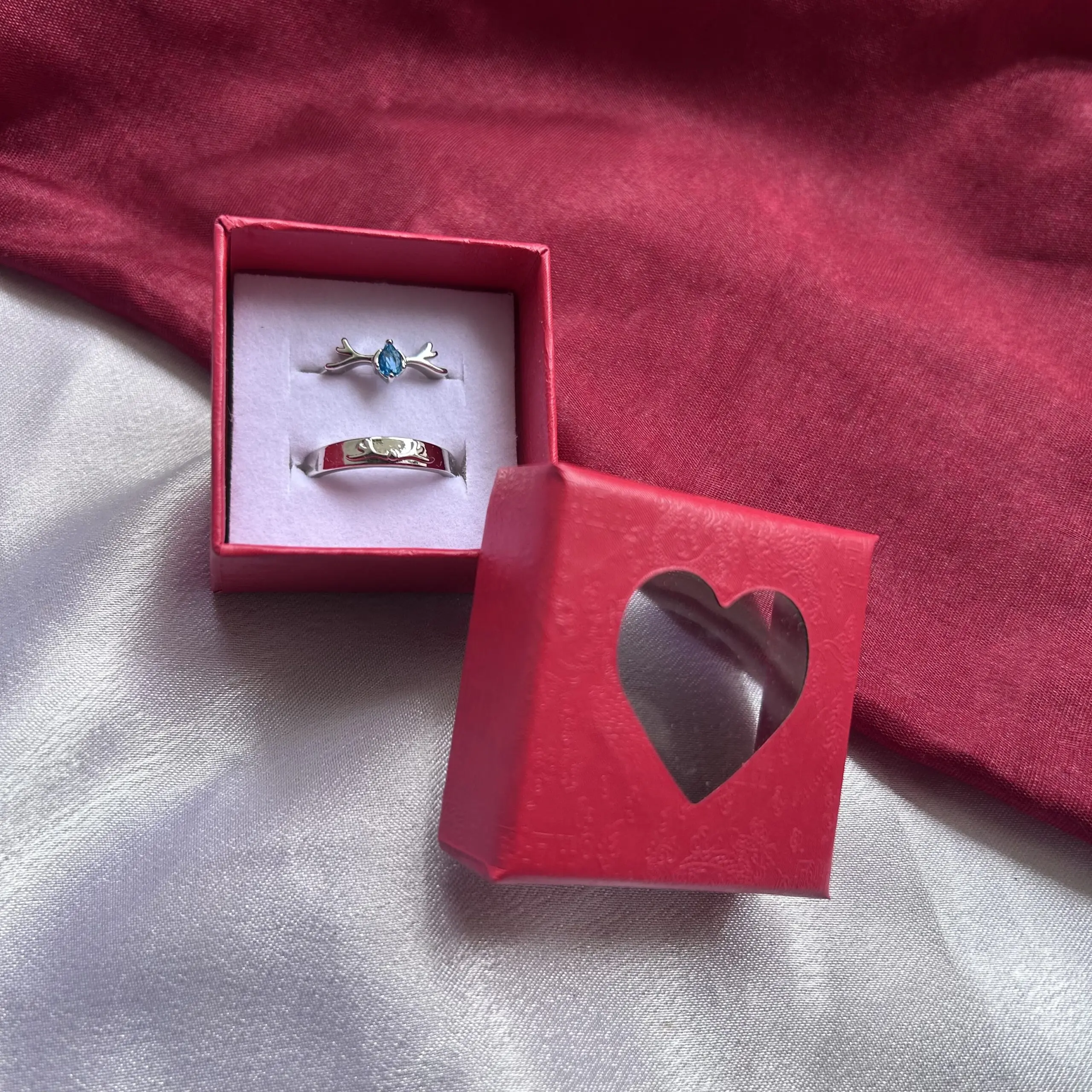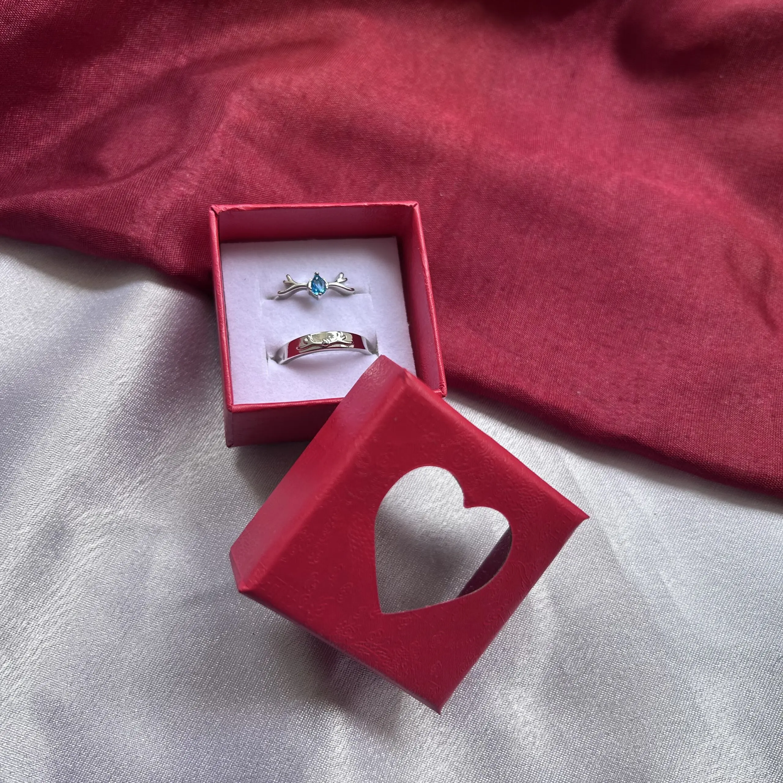 Blue stone Silver Couple Rings