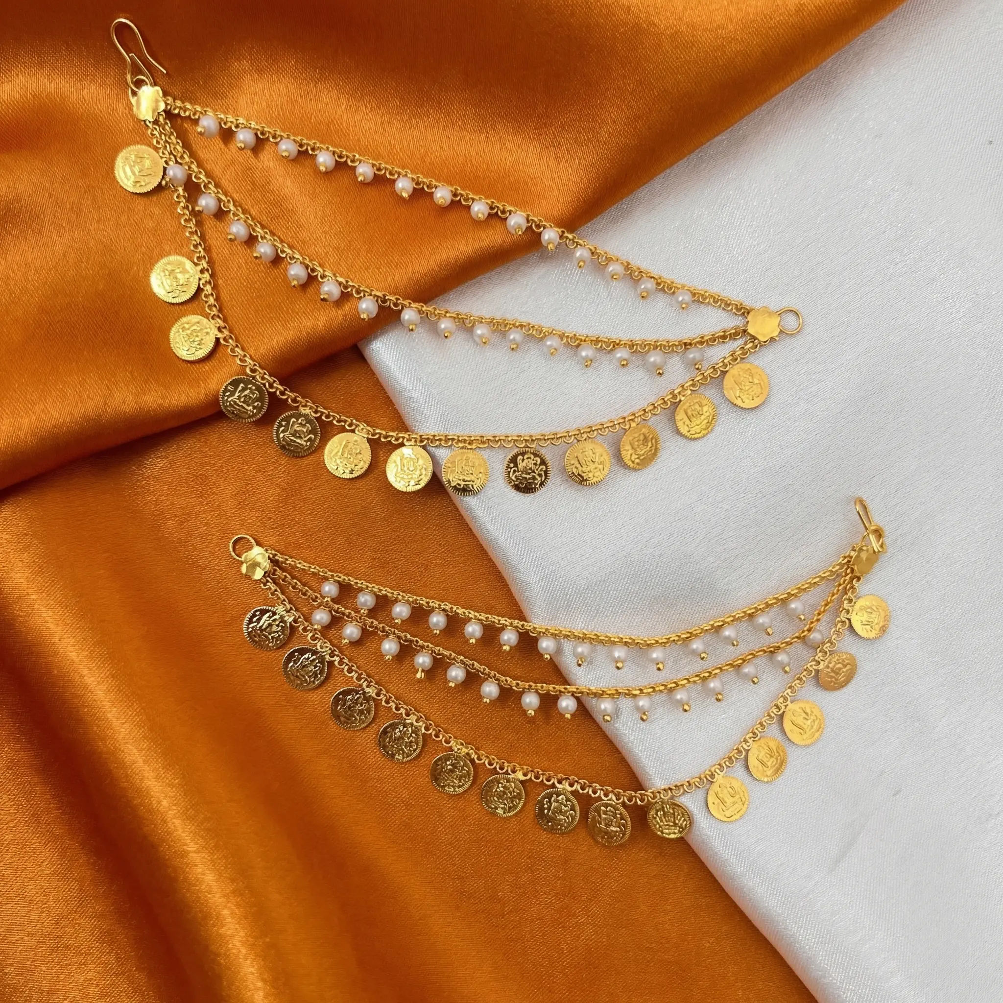 Coin design with White Pearls Ear-chain