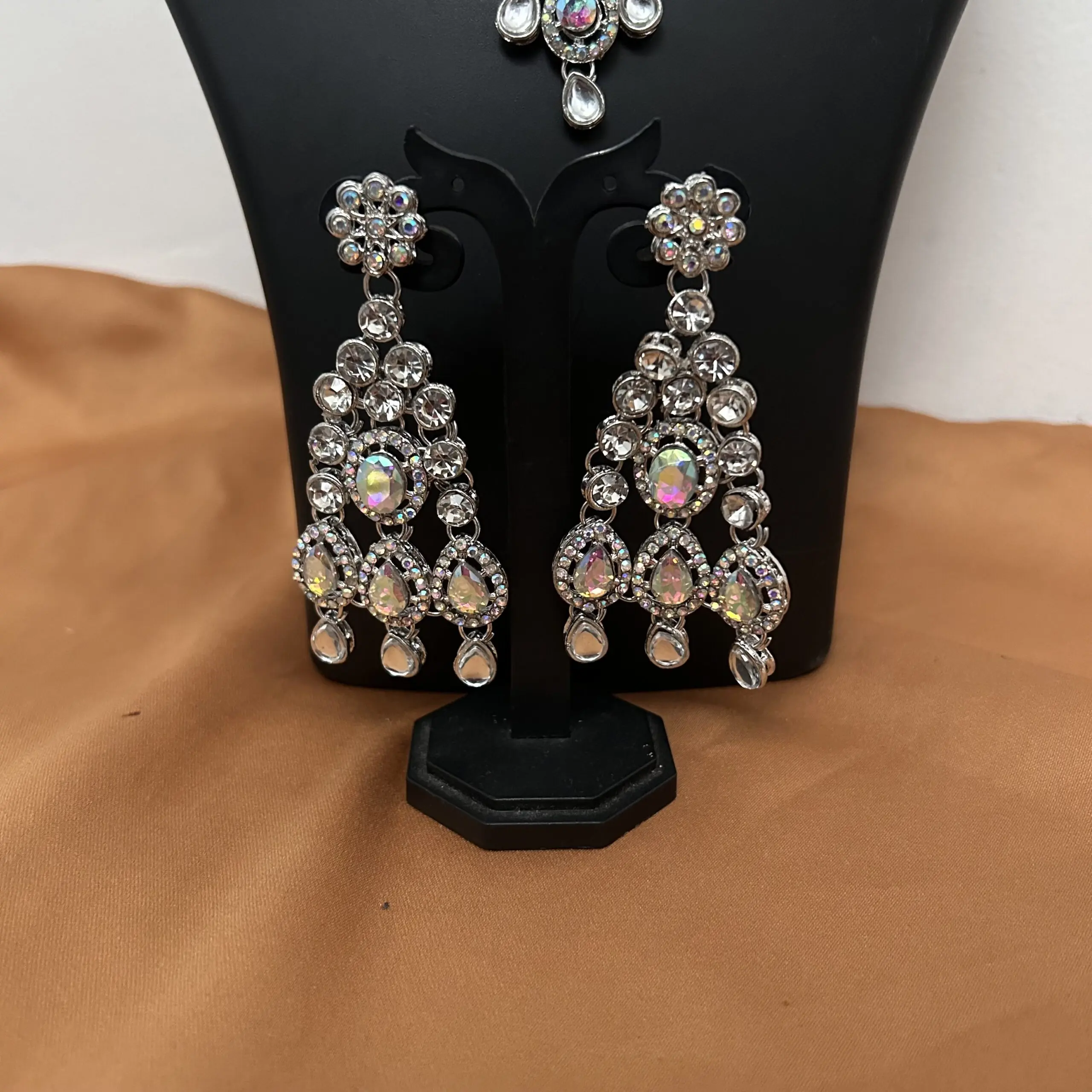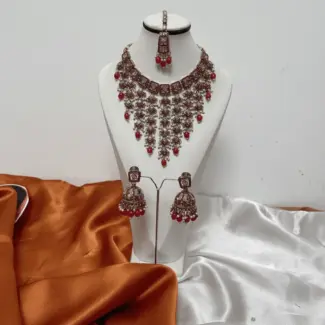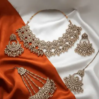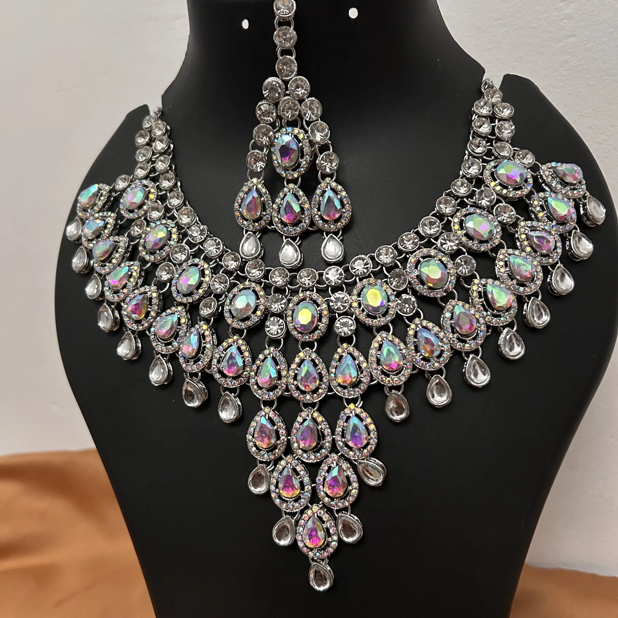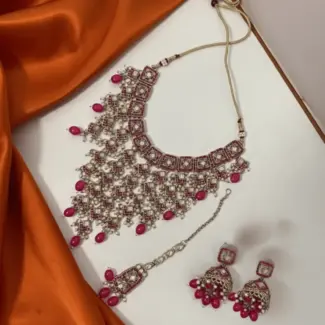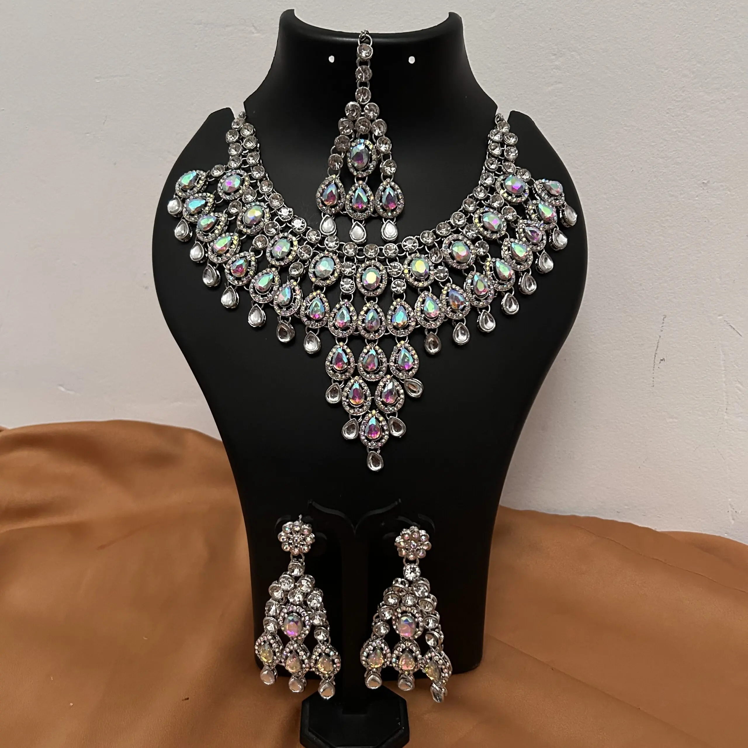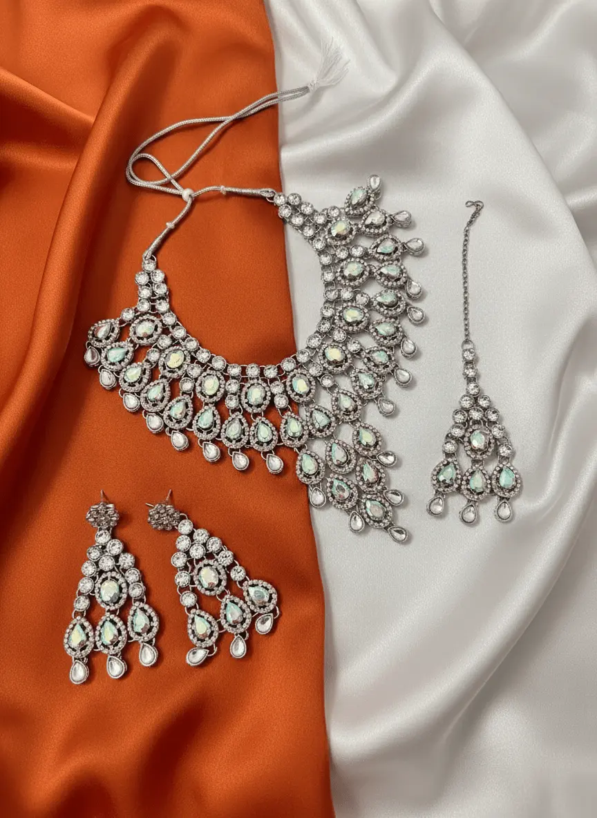 Crystal Necklace with Earrings and Tikka