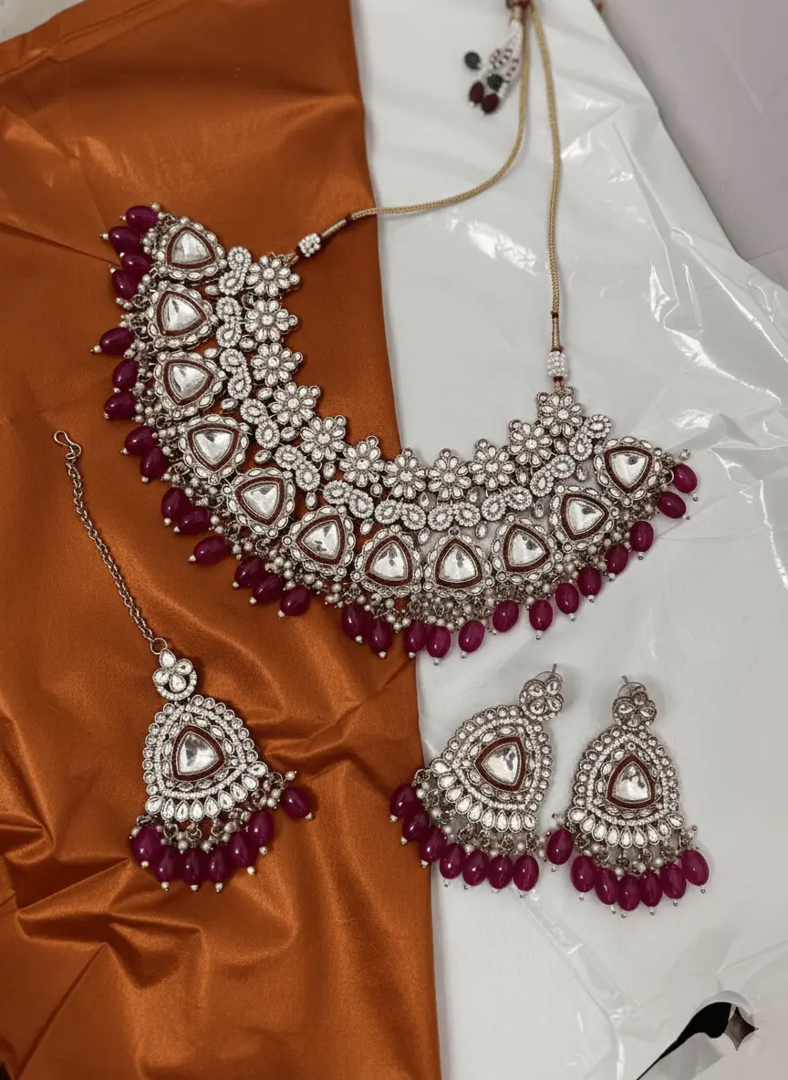 Deep Purple Kundan Stone Necklace Set