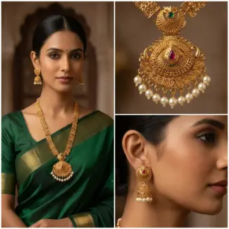 Double layer Lakshmi Haram with Jhumka