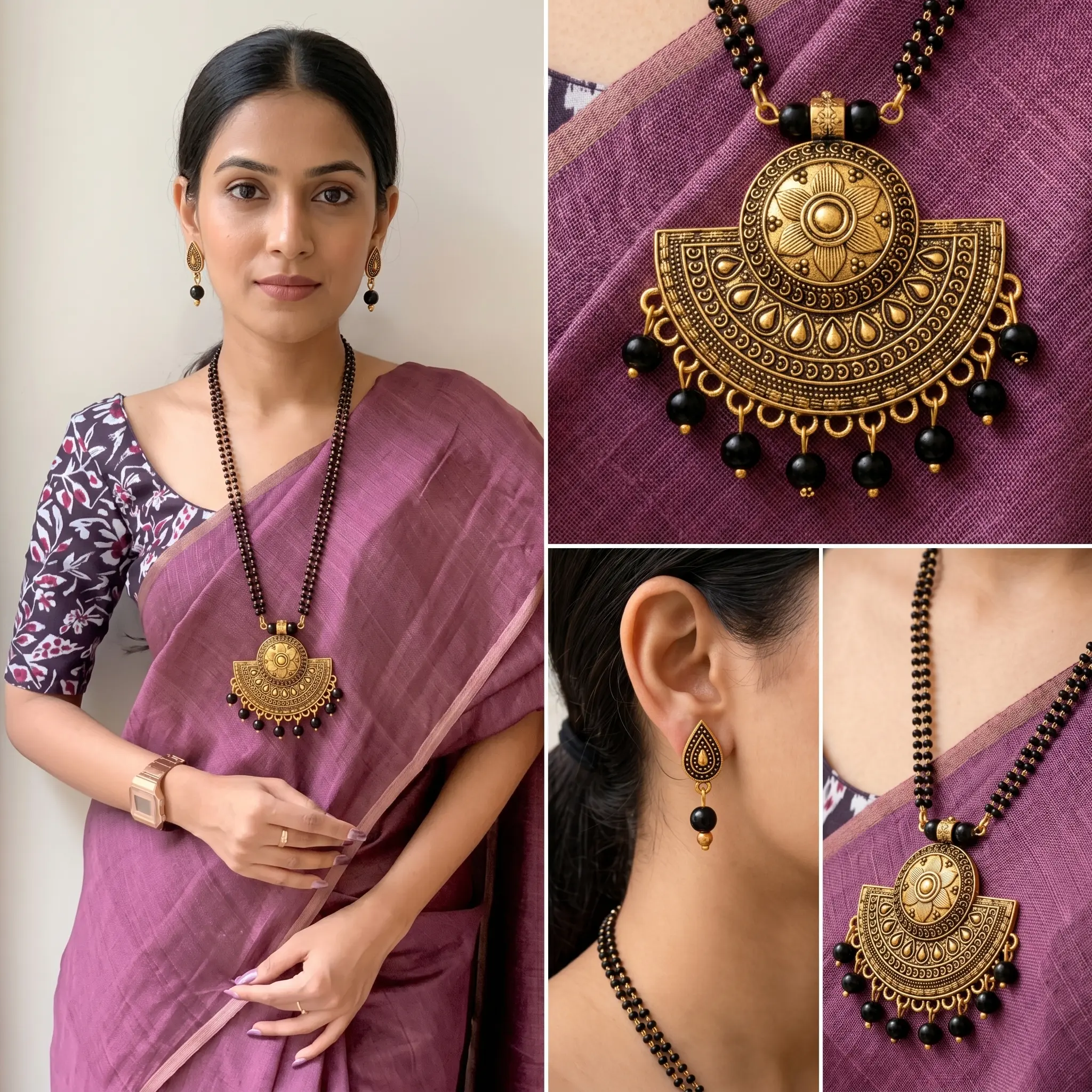 Double layer Mangal sutra with Earrings