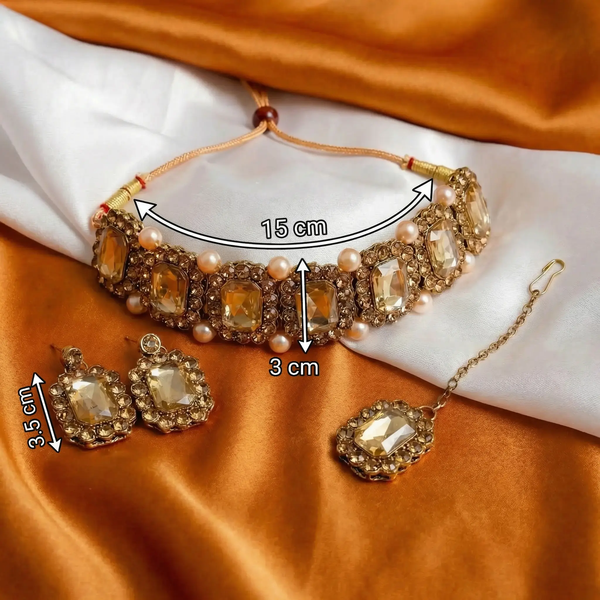 Ethnic Gold Stone Choker with Earring & Tikka