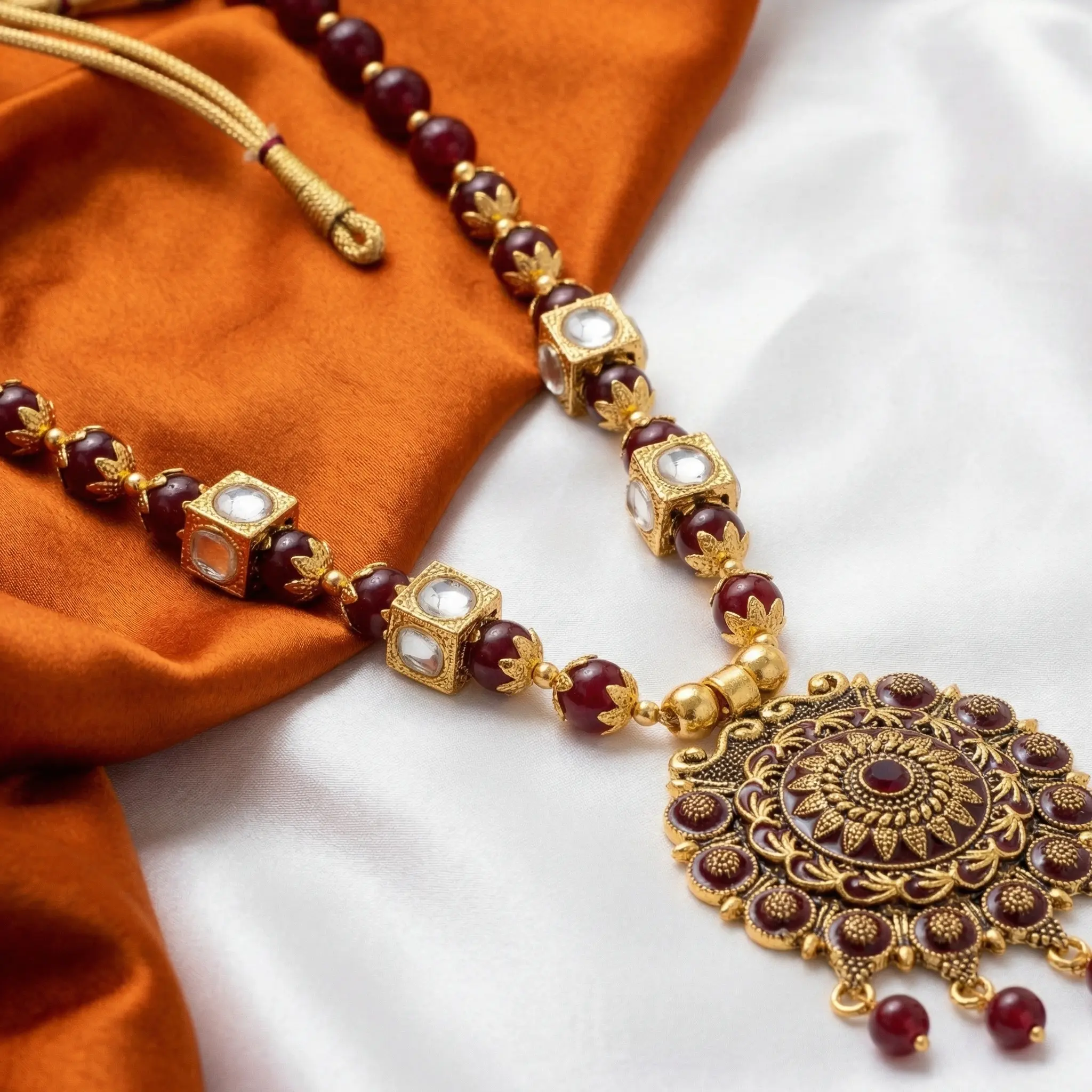 Gold color mixed Maala with Earrings