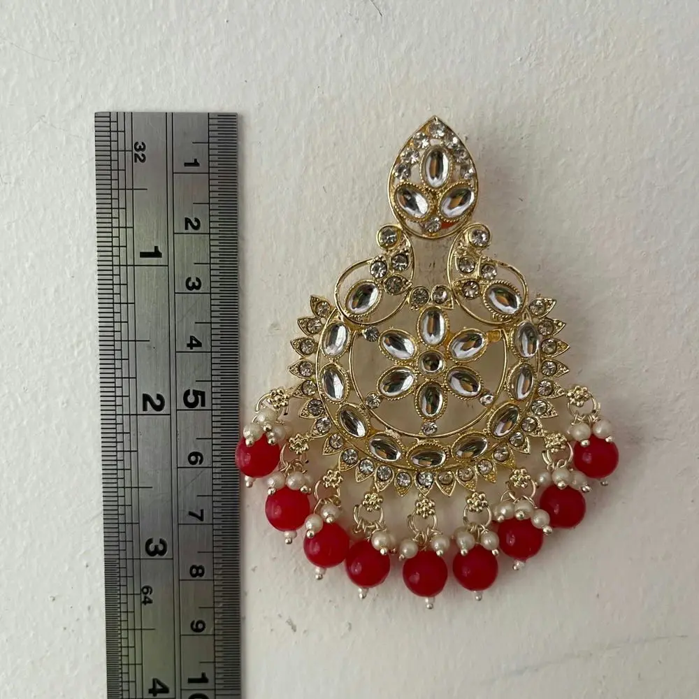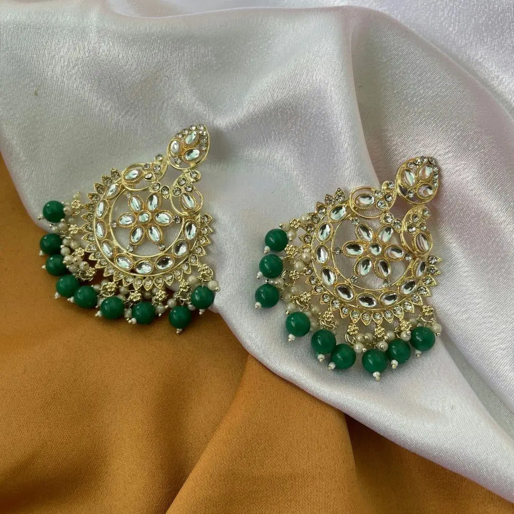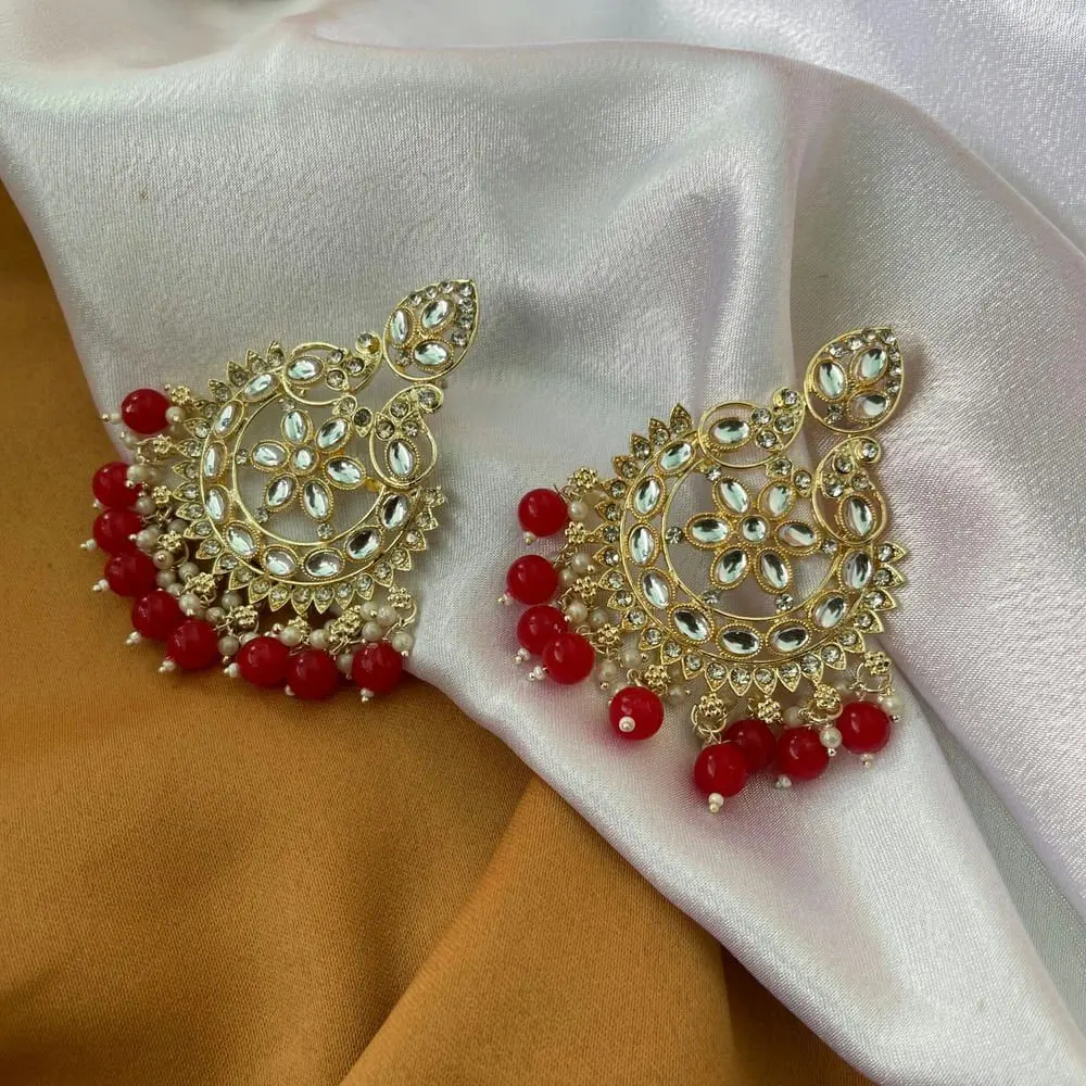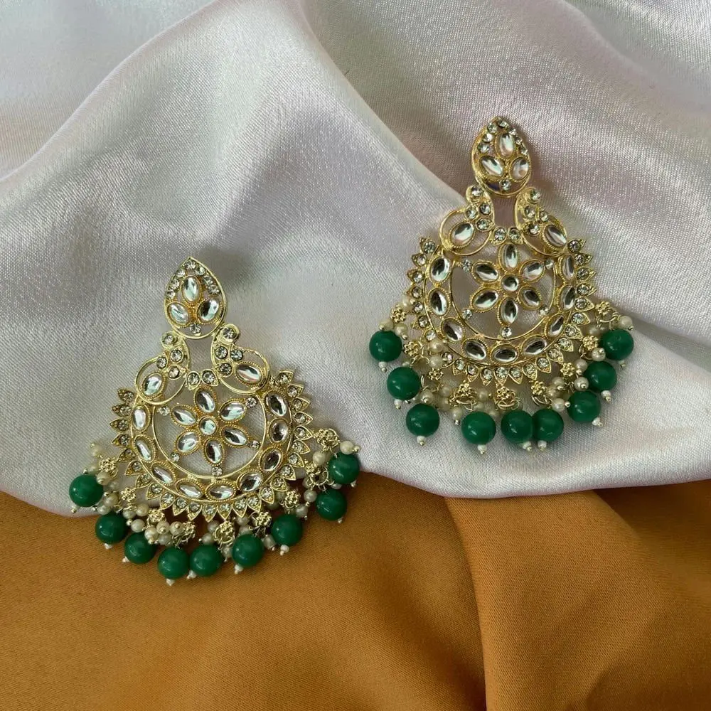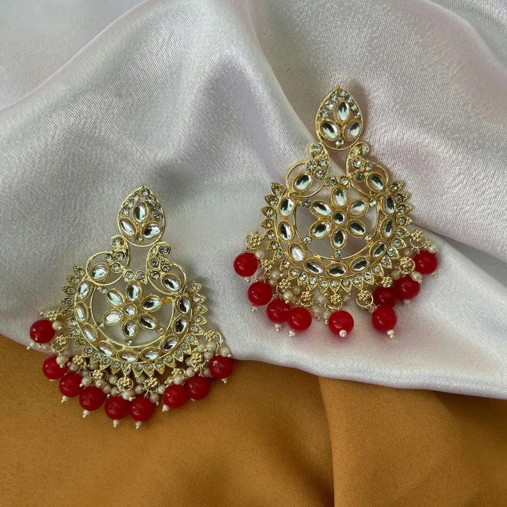 Green/Red Artificial Kundan Beads Earrings