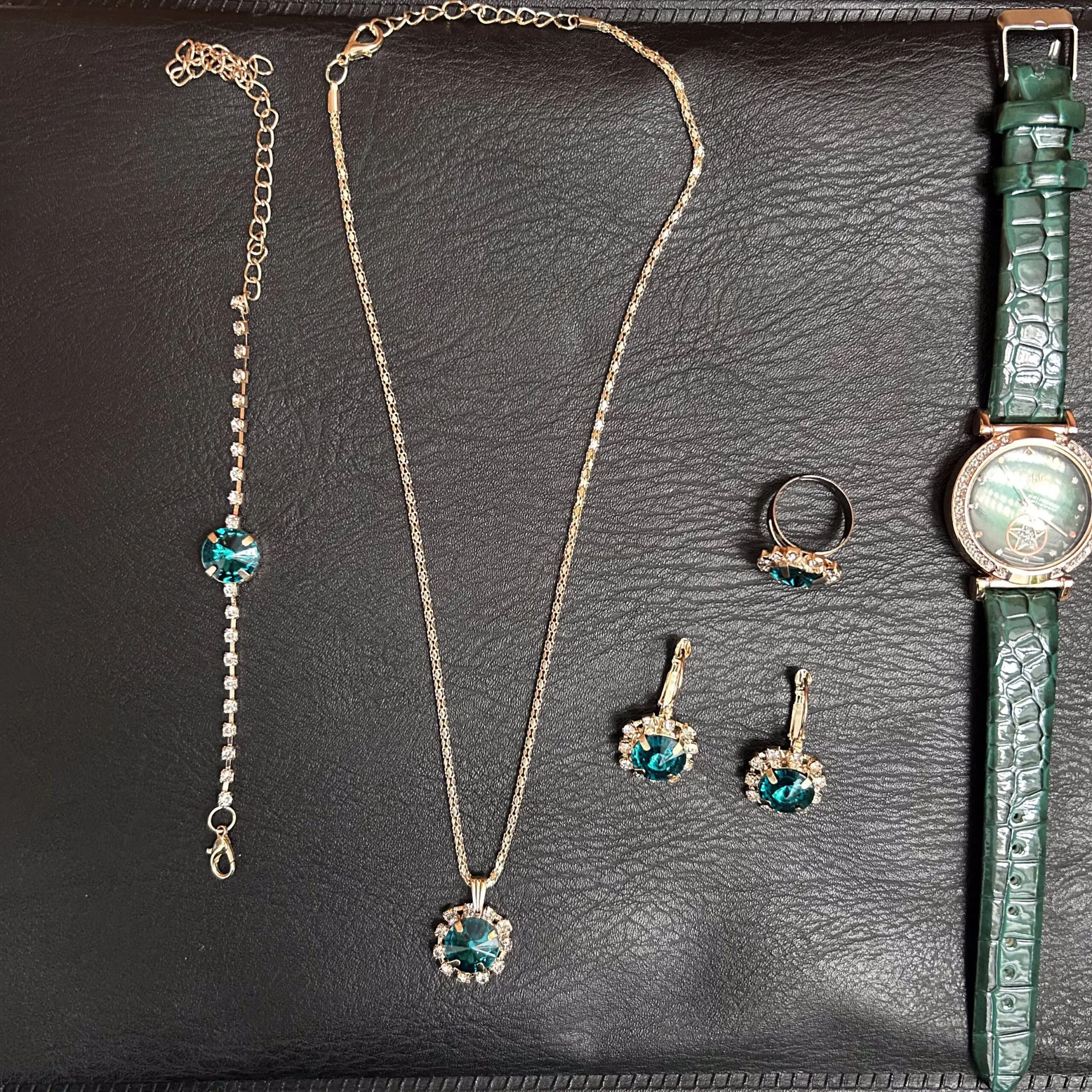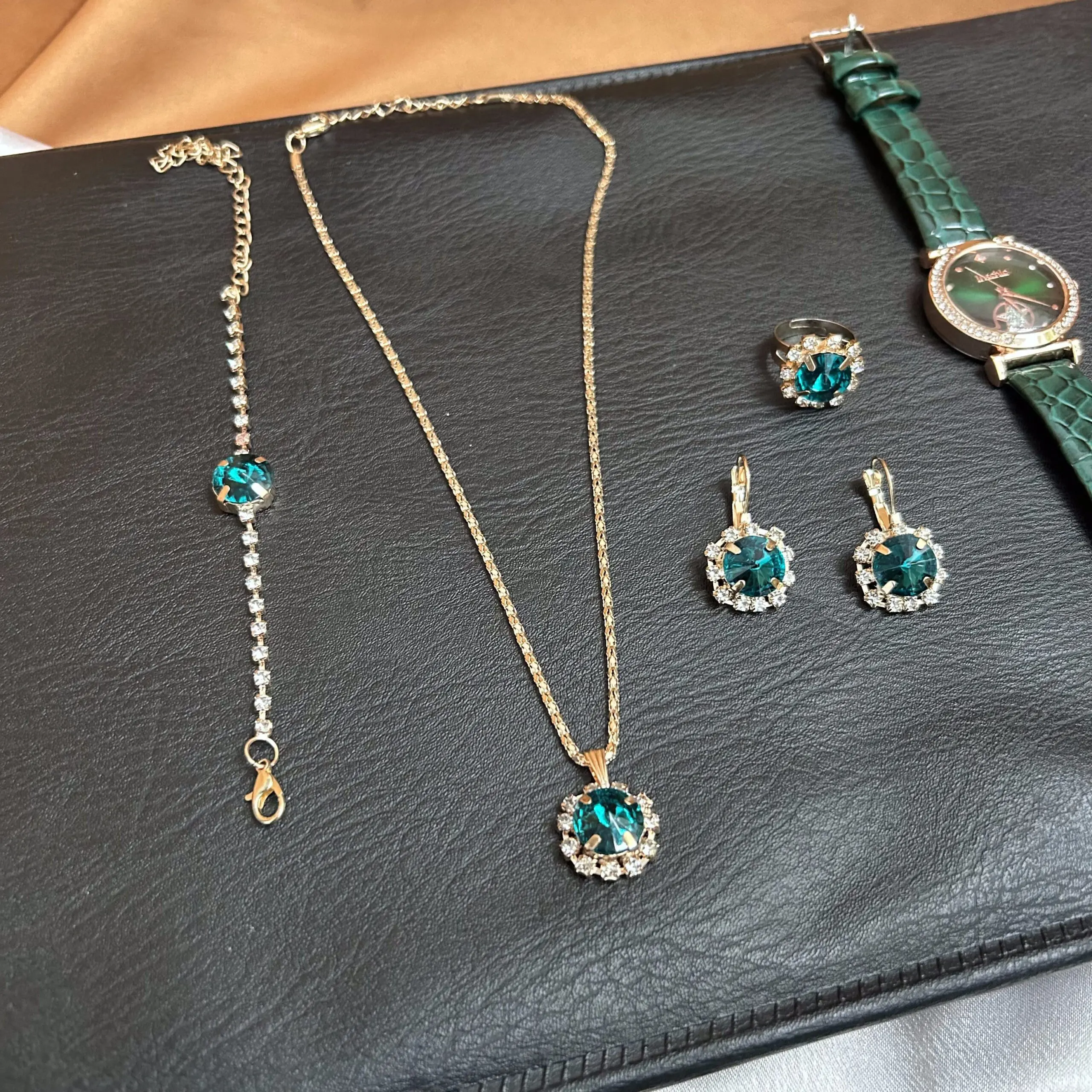 Green Watch with Full Jewellery Set