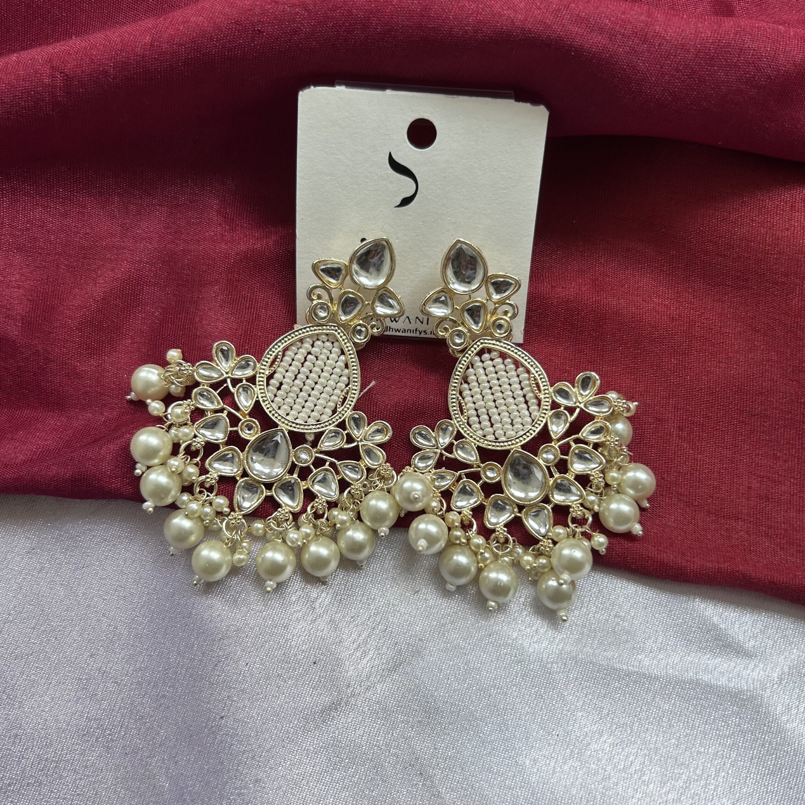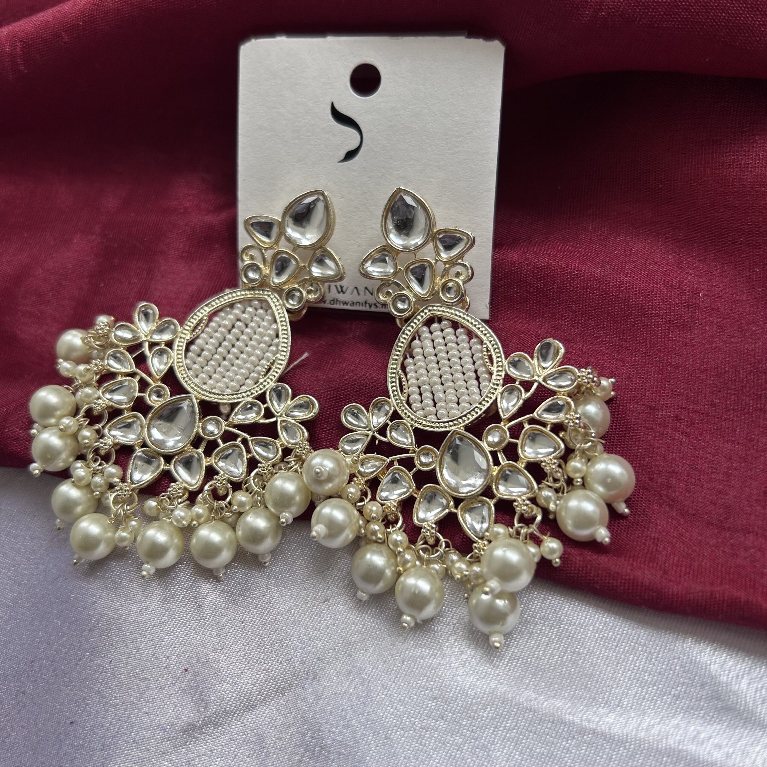 Kundan & Jambo Beads Dangler Earrings with Lines Beaded design