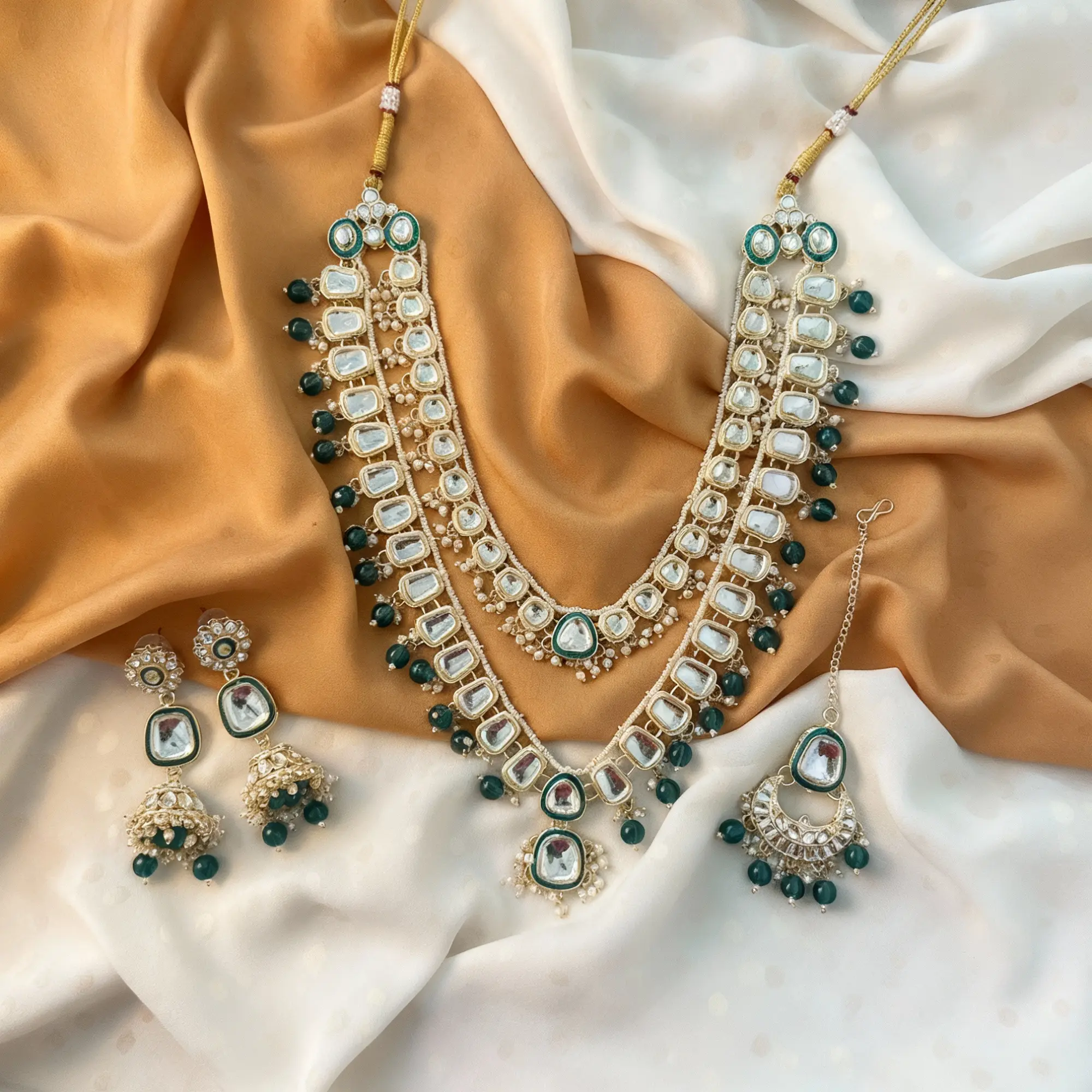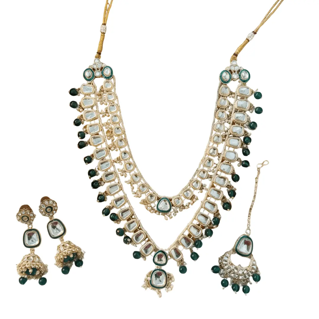 Kundan Maala with Green beads Set