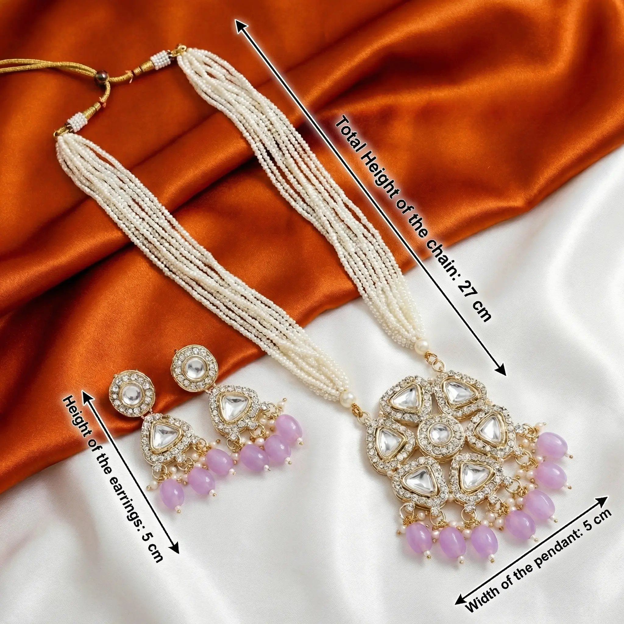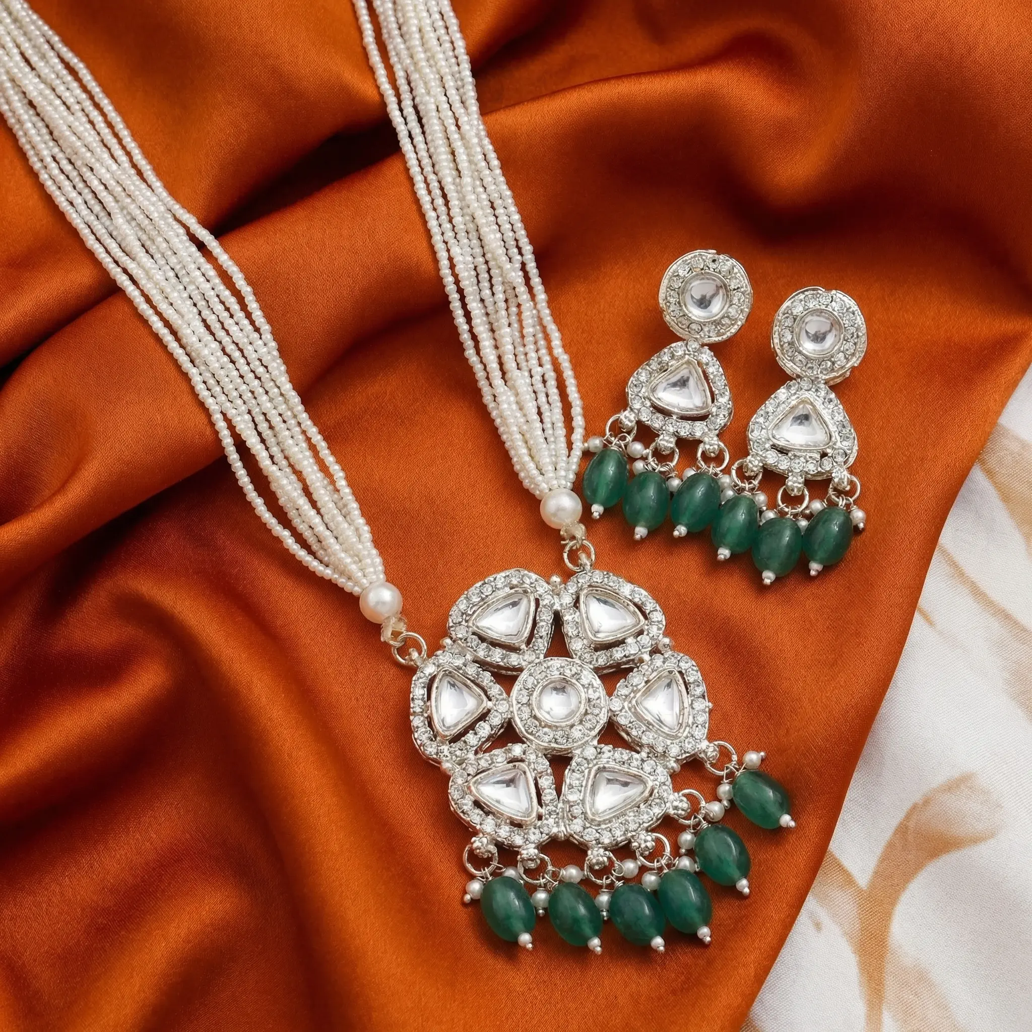 Long White beads Maala and Earrings