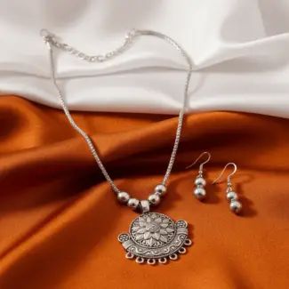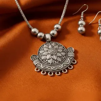 Matte Finish Floral Necklace & Earrings