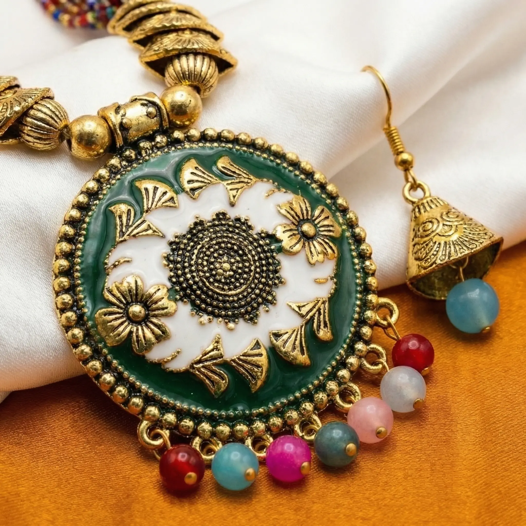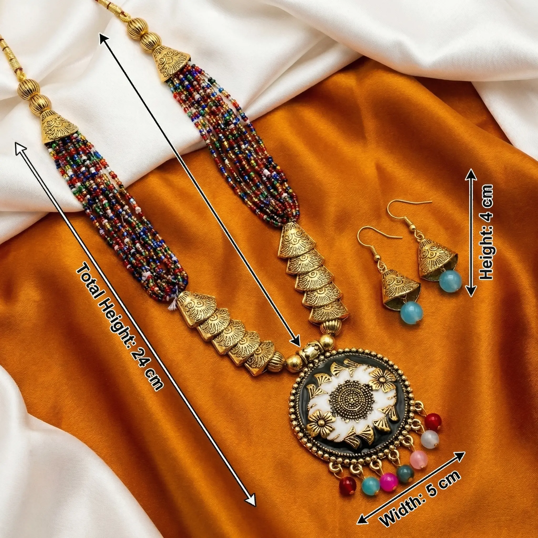 Multi-coloured Beads Maala with Earrings