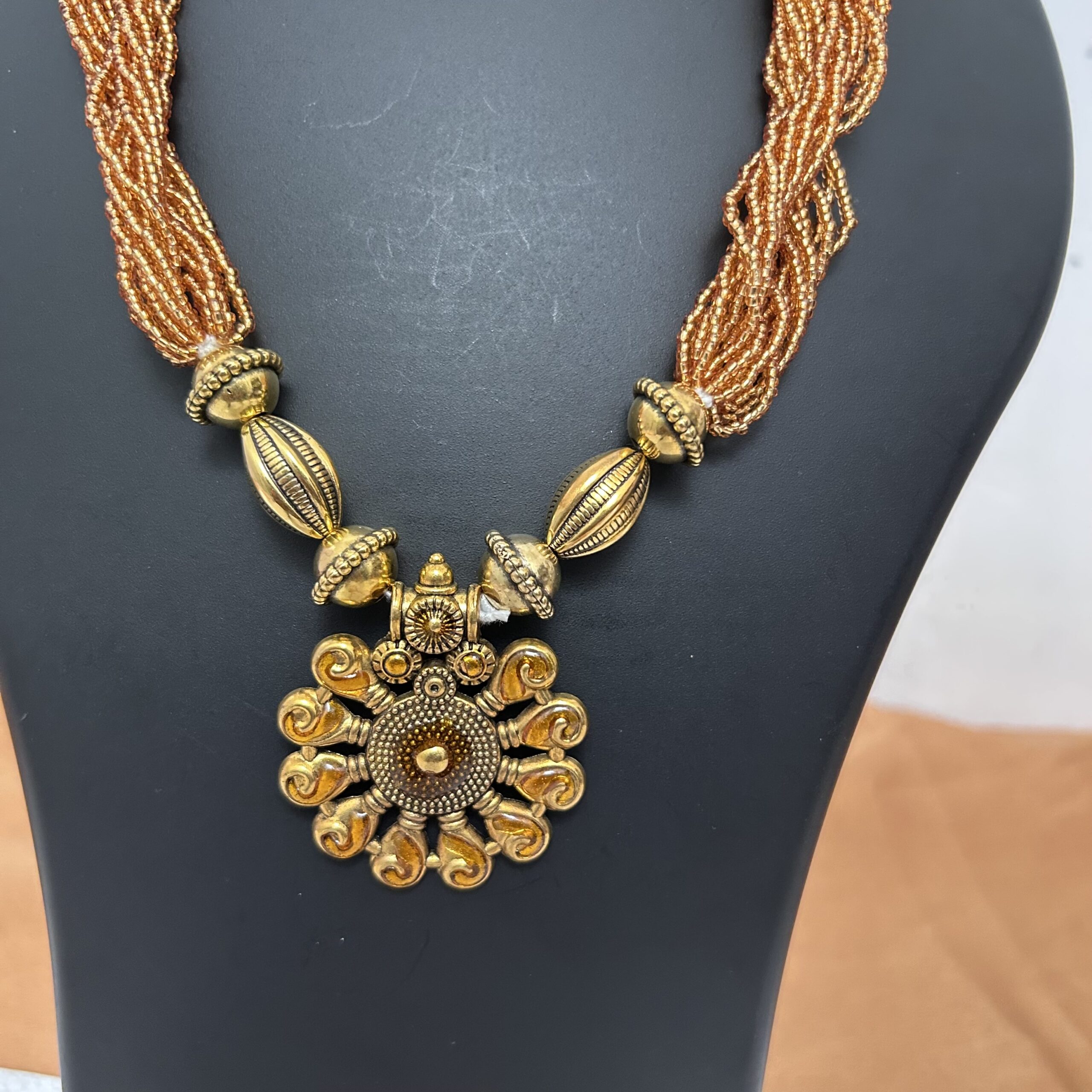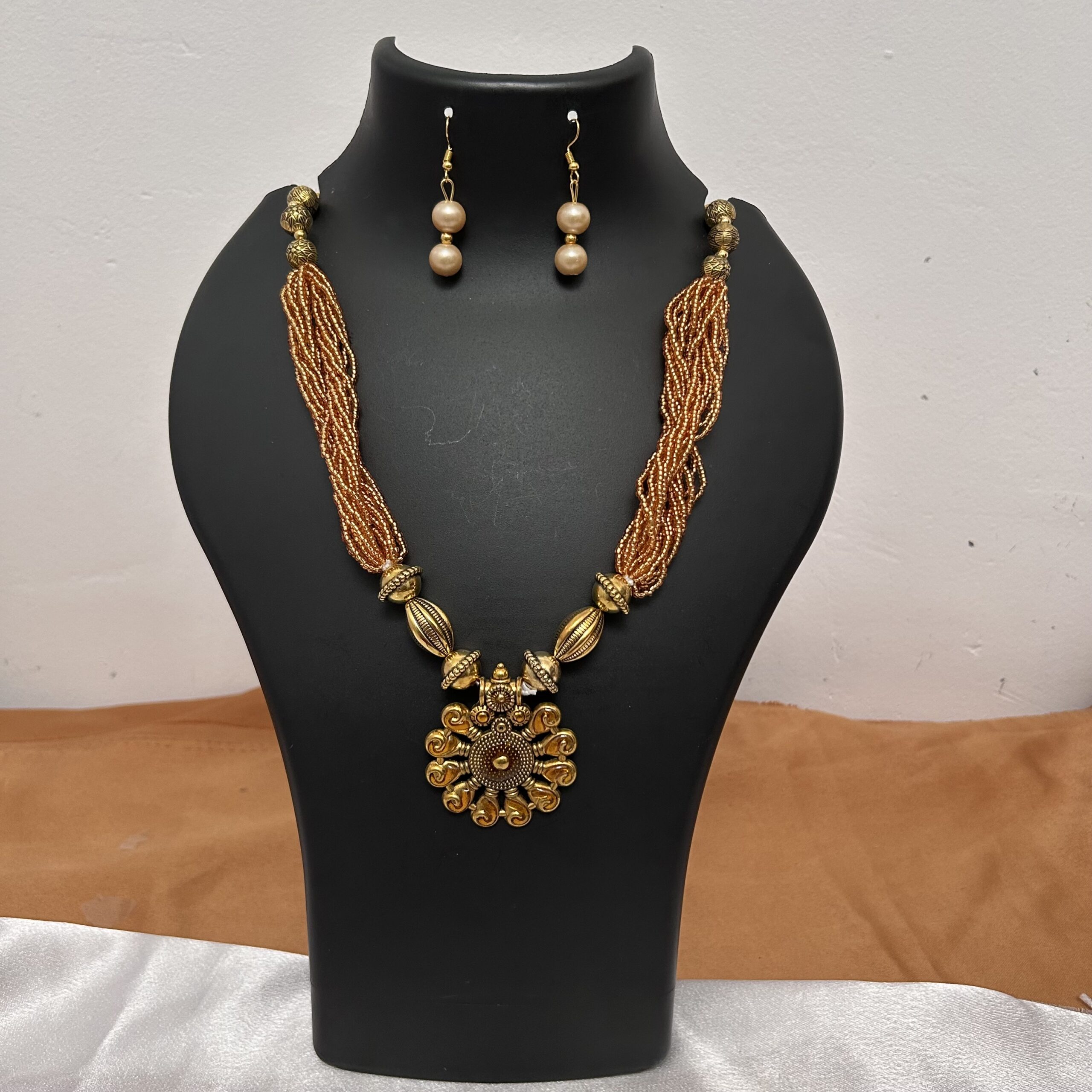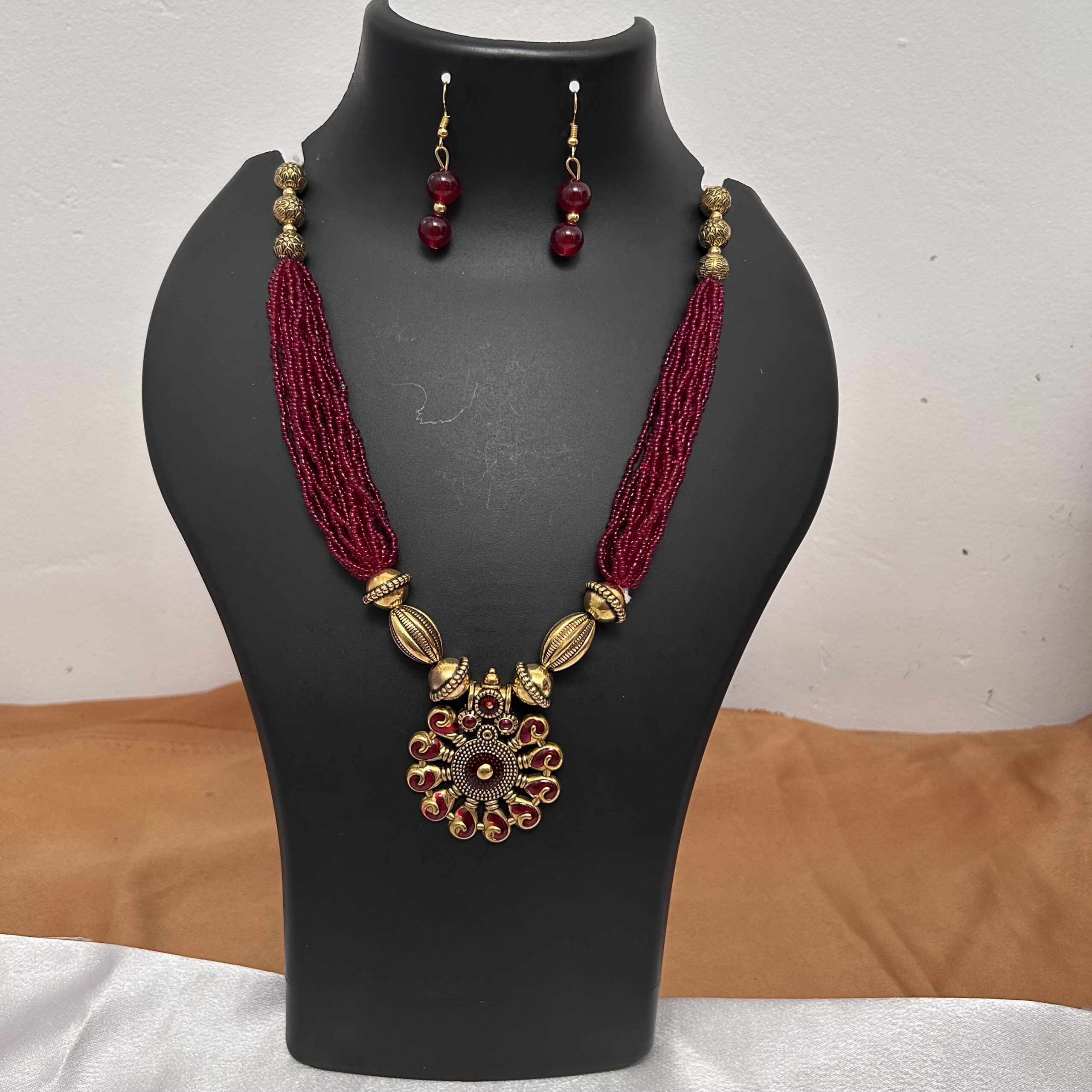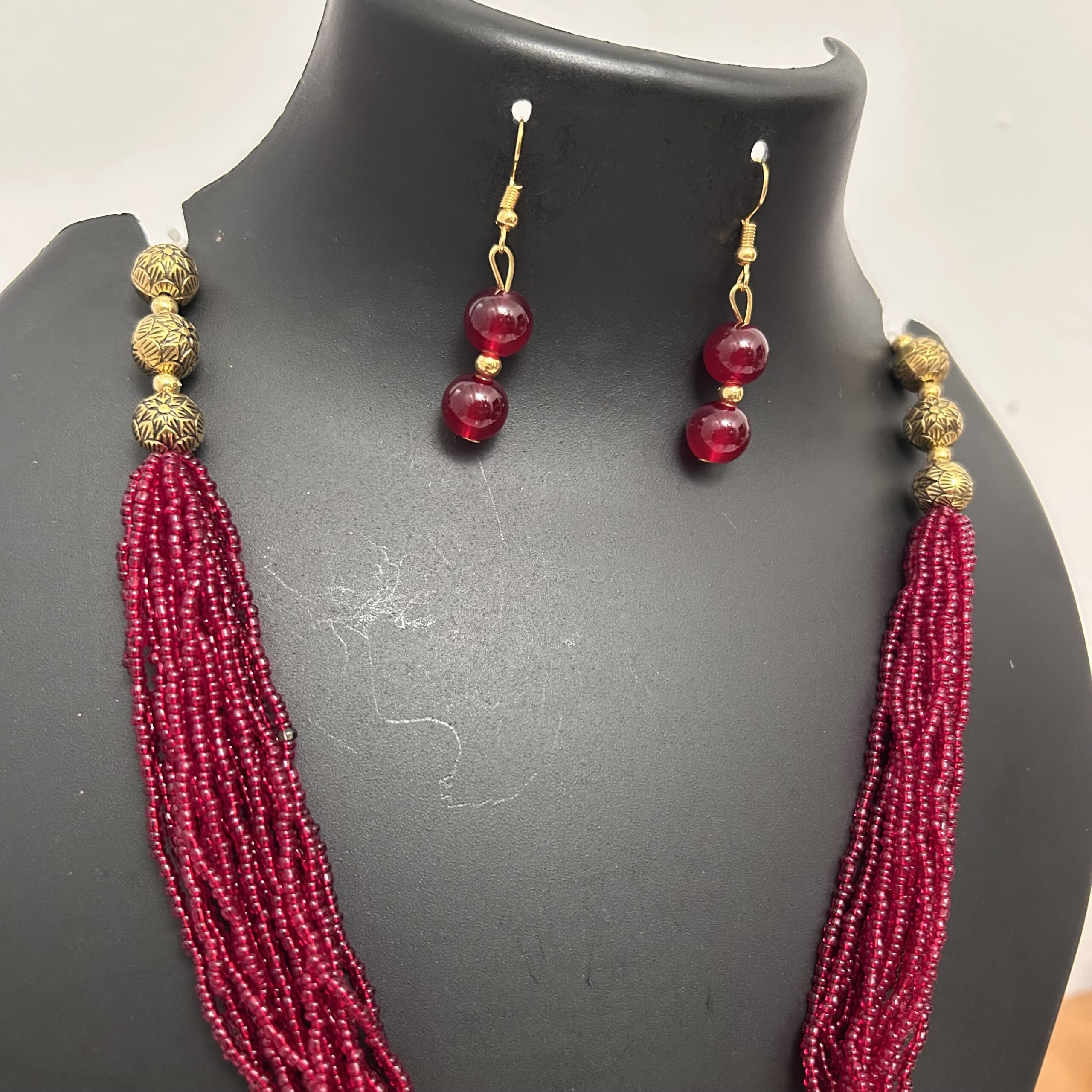 Multi layer Beads Maala & Earrings