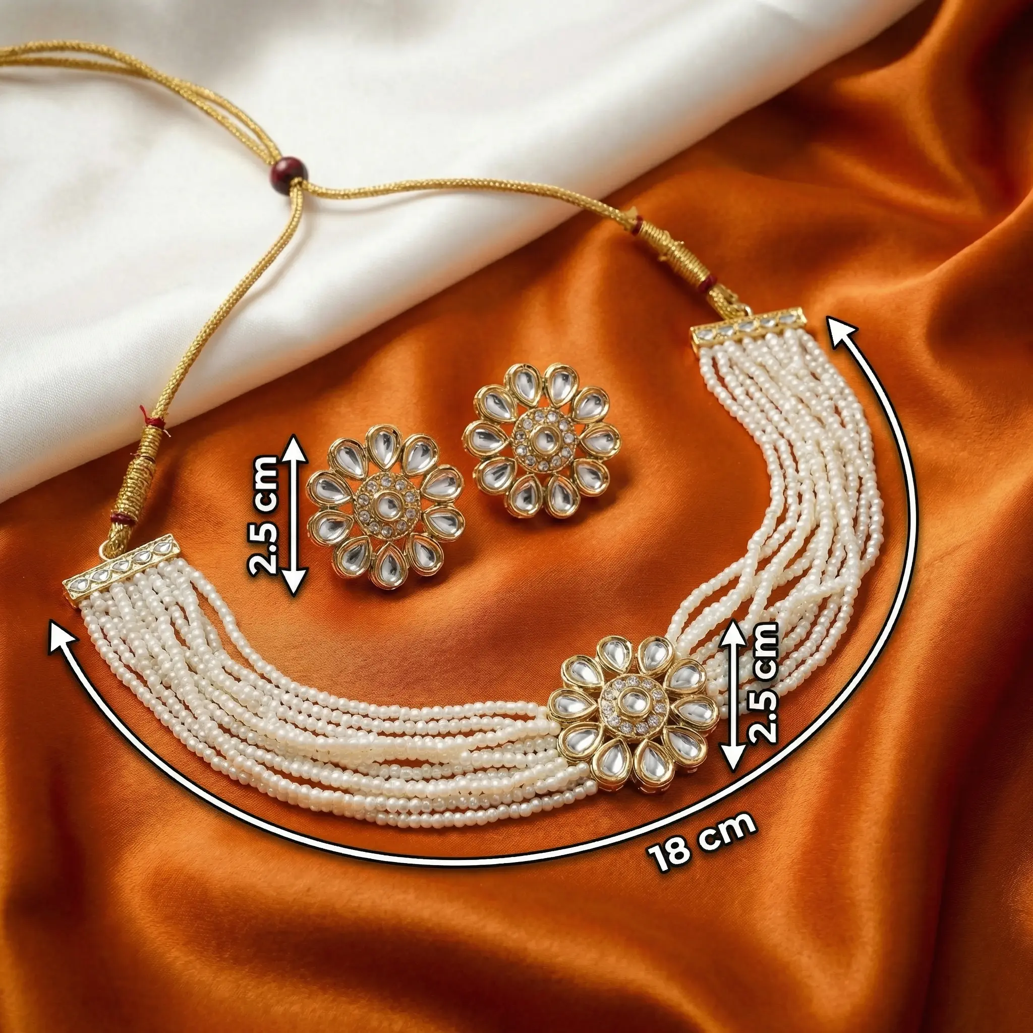Multi-layer White Beads Choker with Earrings – white stone