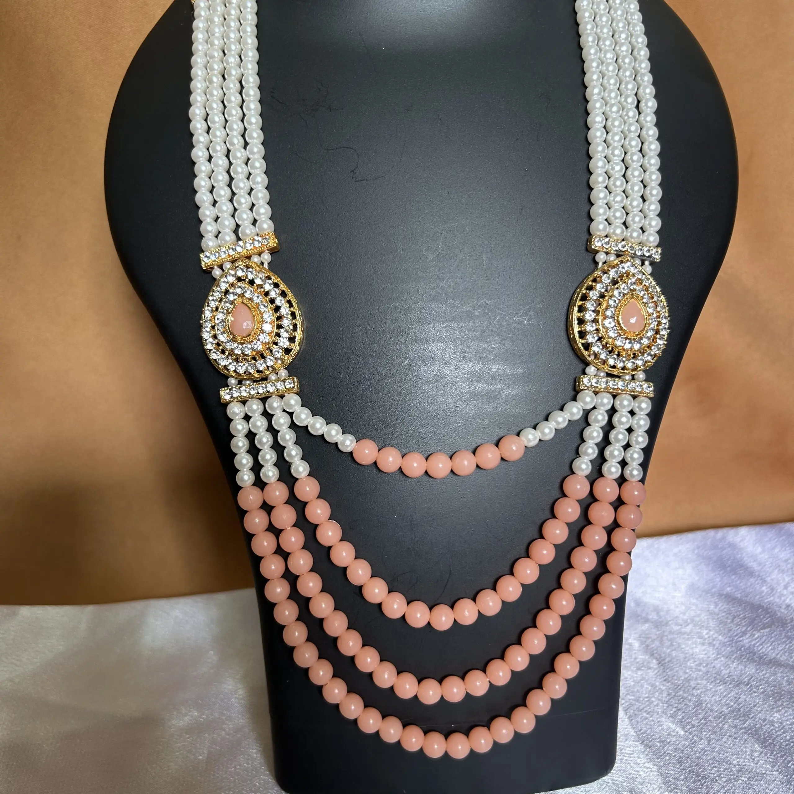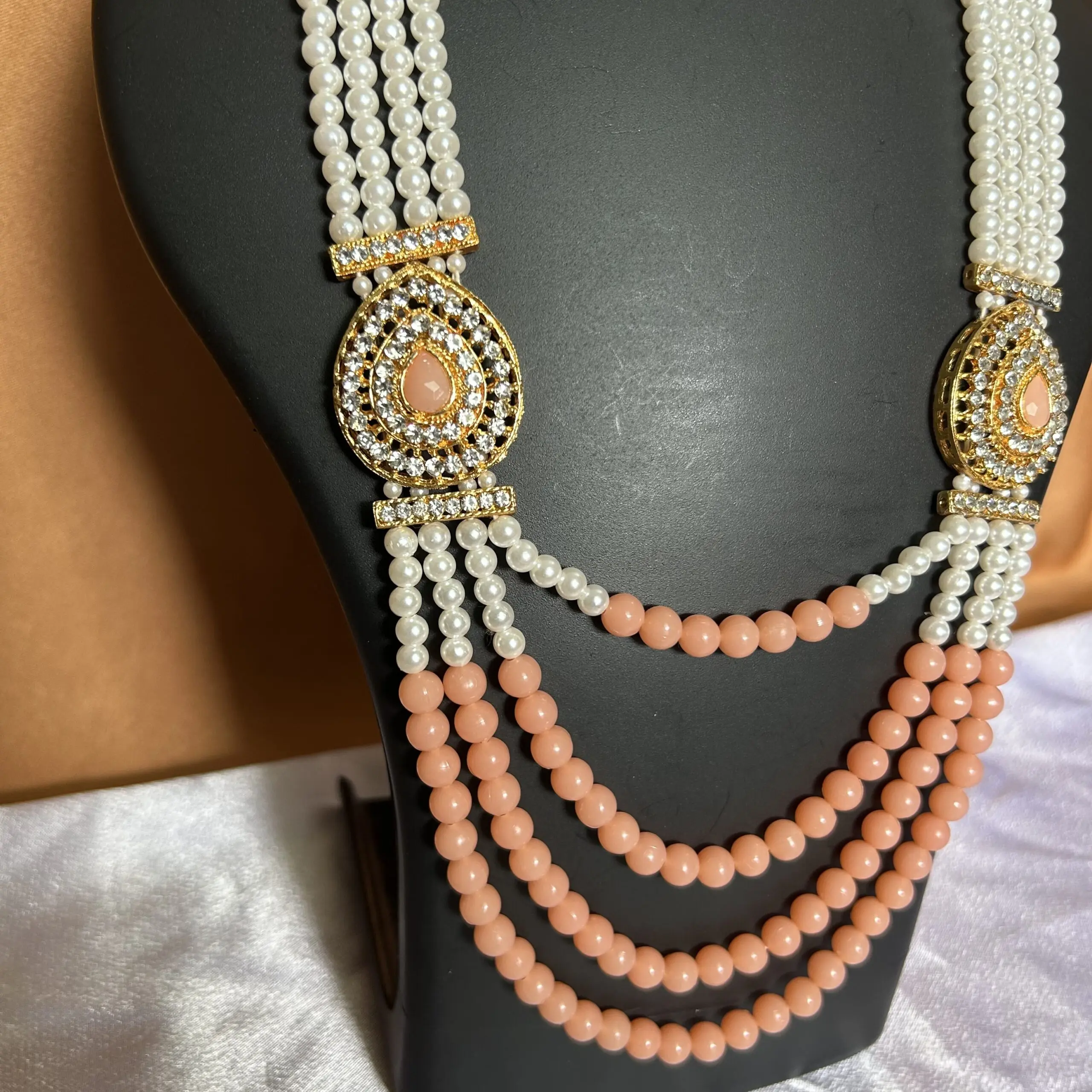 White Pearl with Gold design Necklace and Earrings