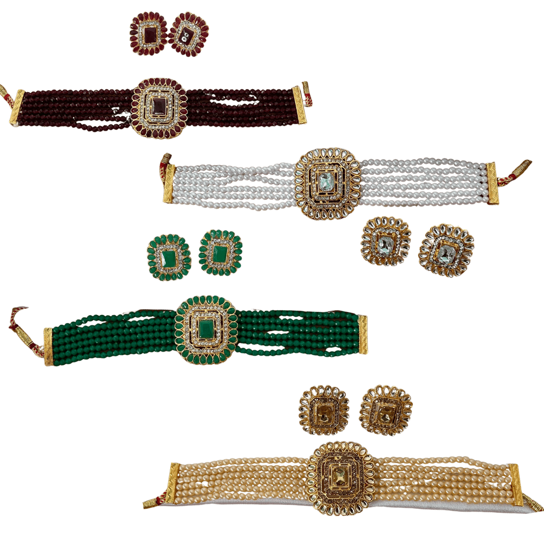 Multi string Necklace Set With Earrings