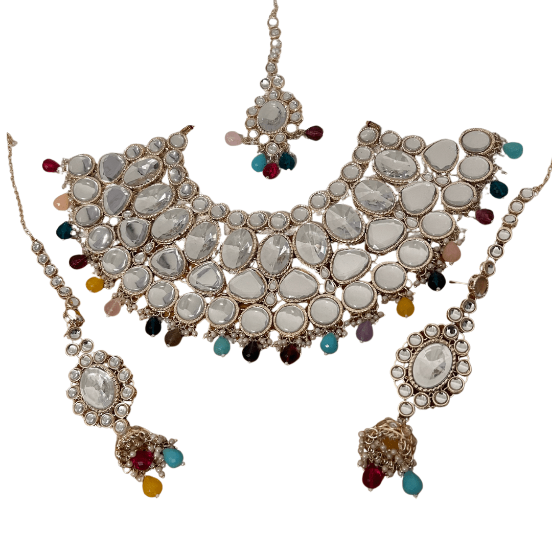 Multicolours Beads Kundan Necklace Set