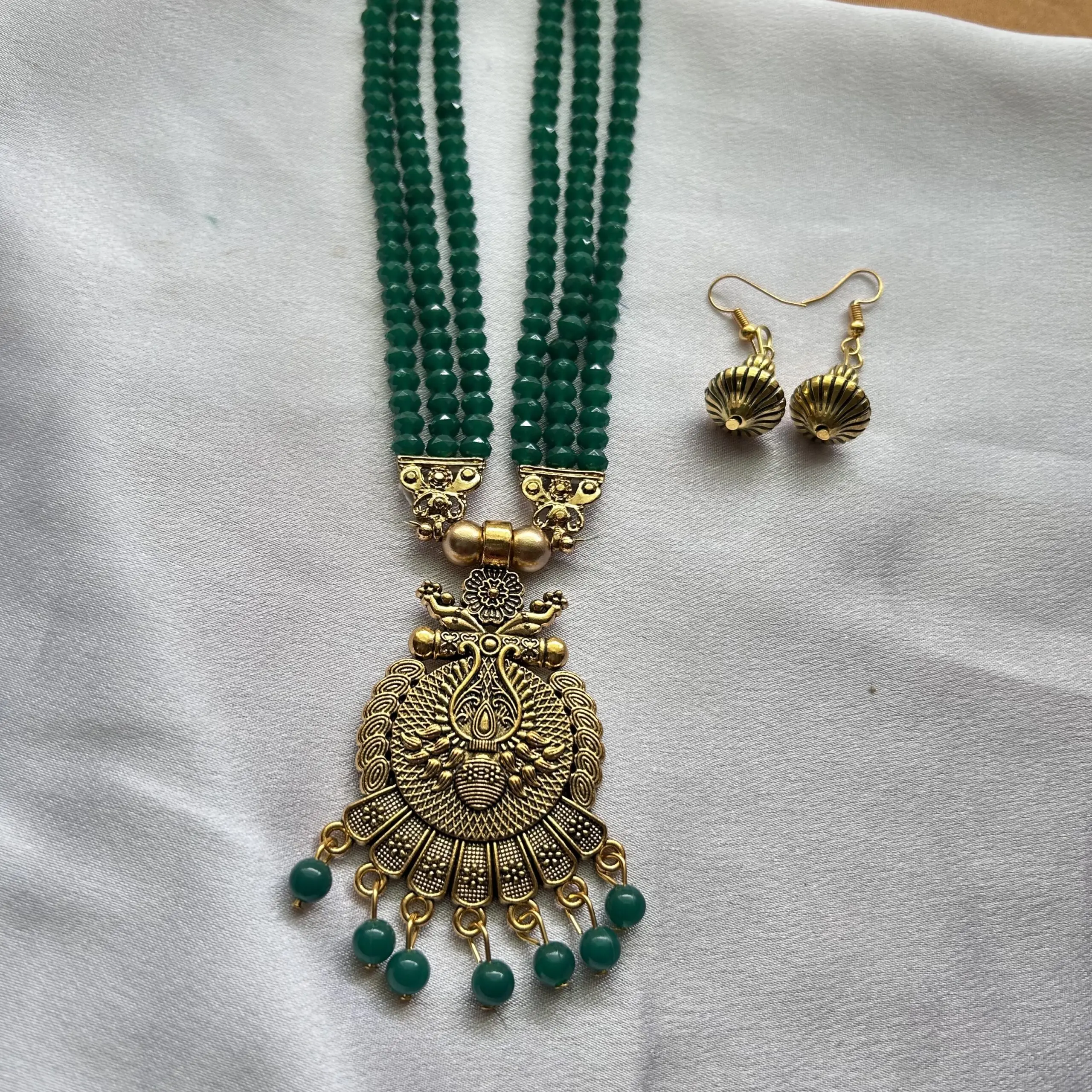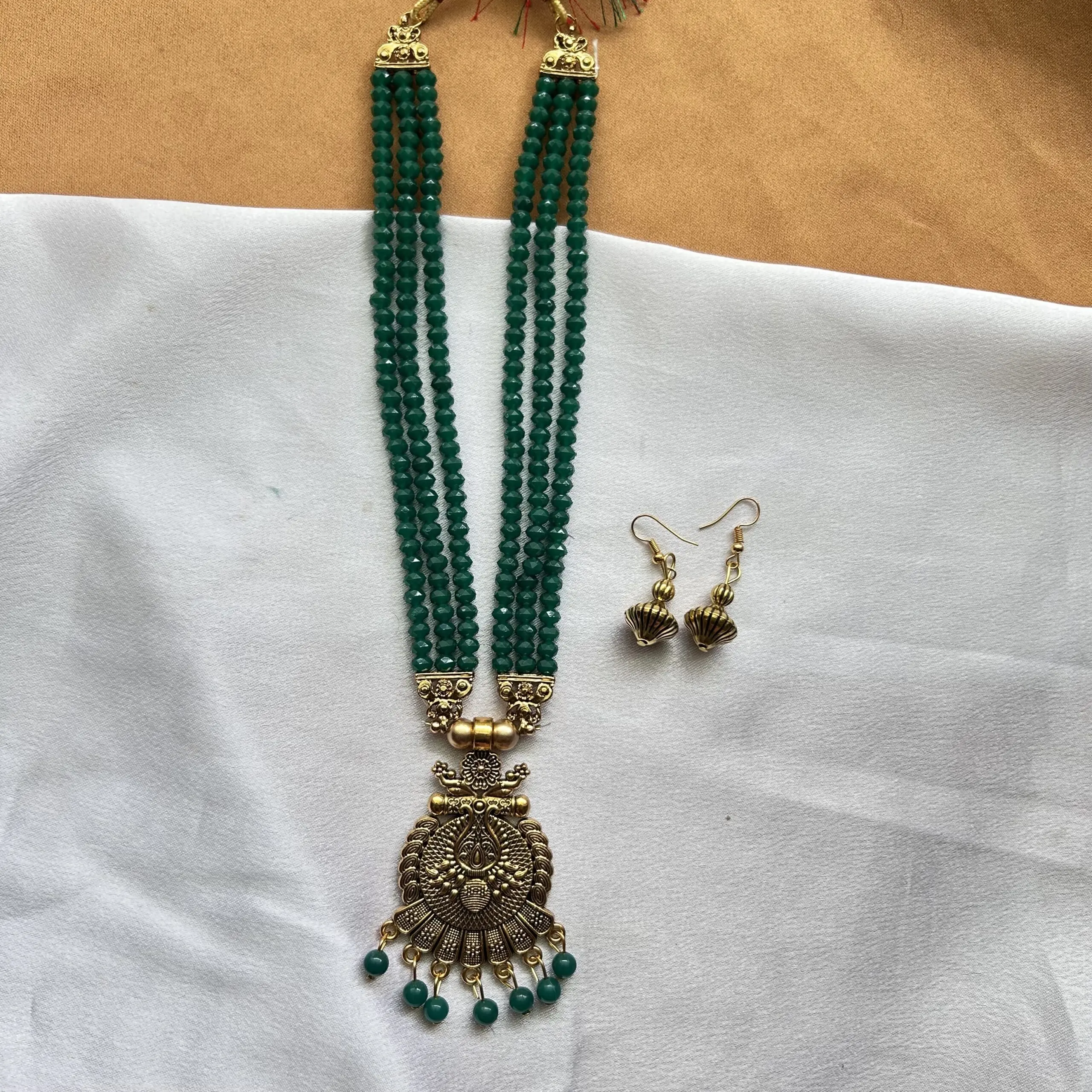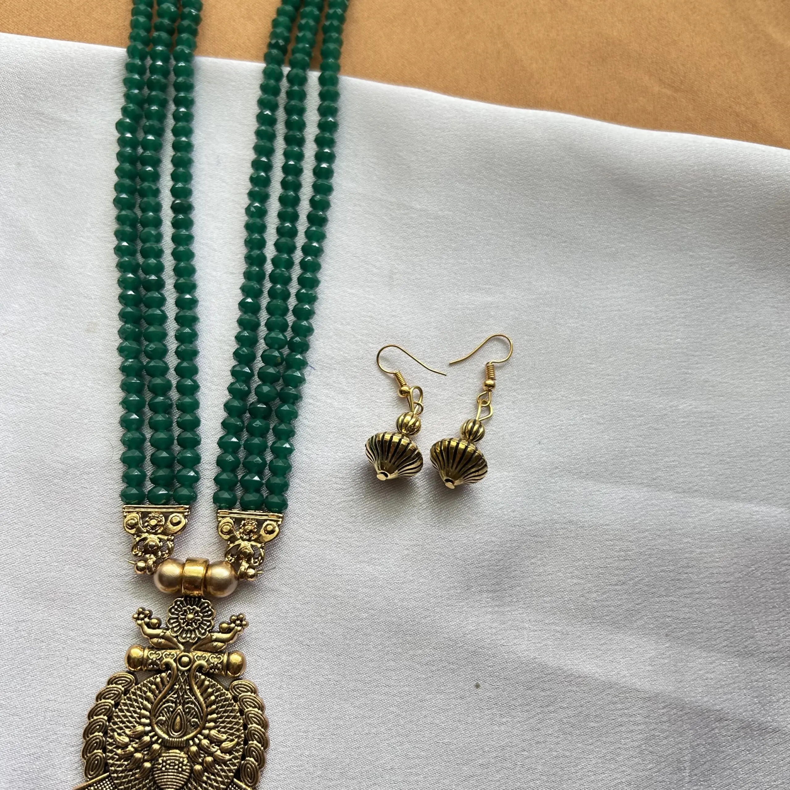 Multilayer Beads Mala and Earrings