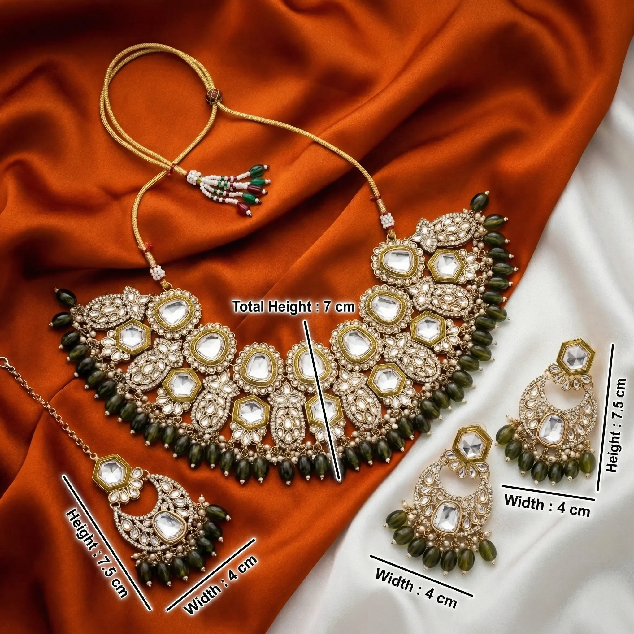 Olive Green Beads kundan Necklace Set