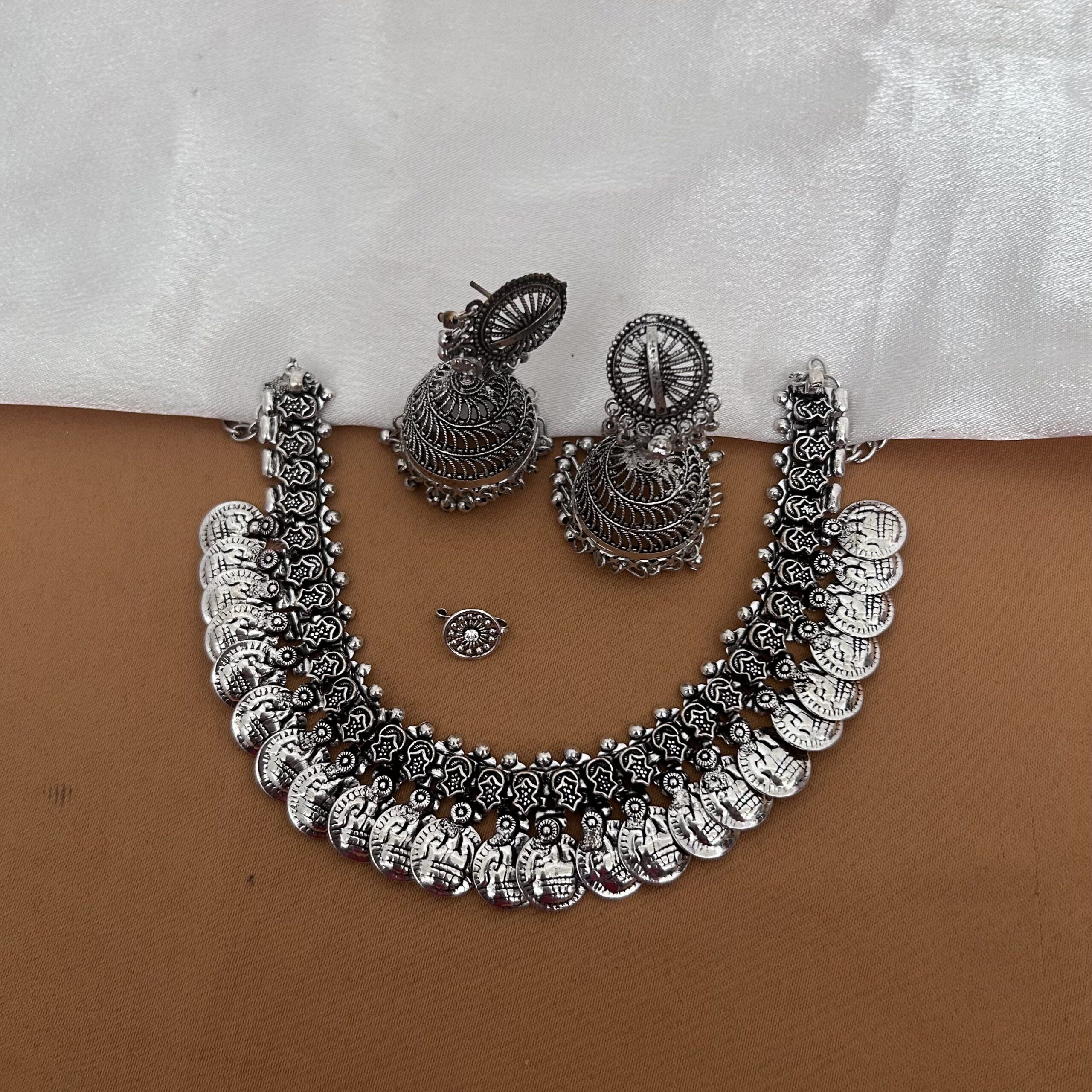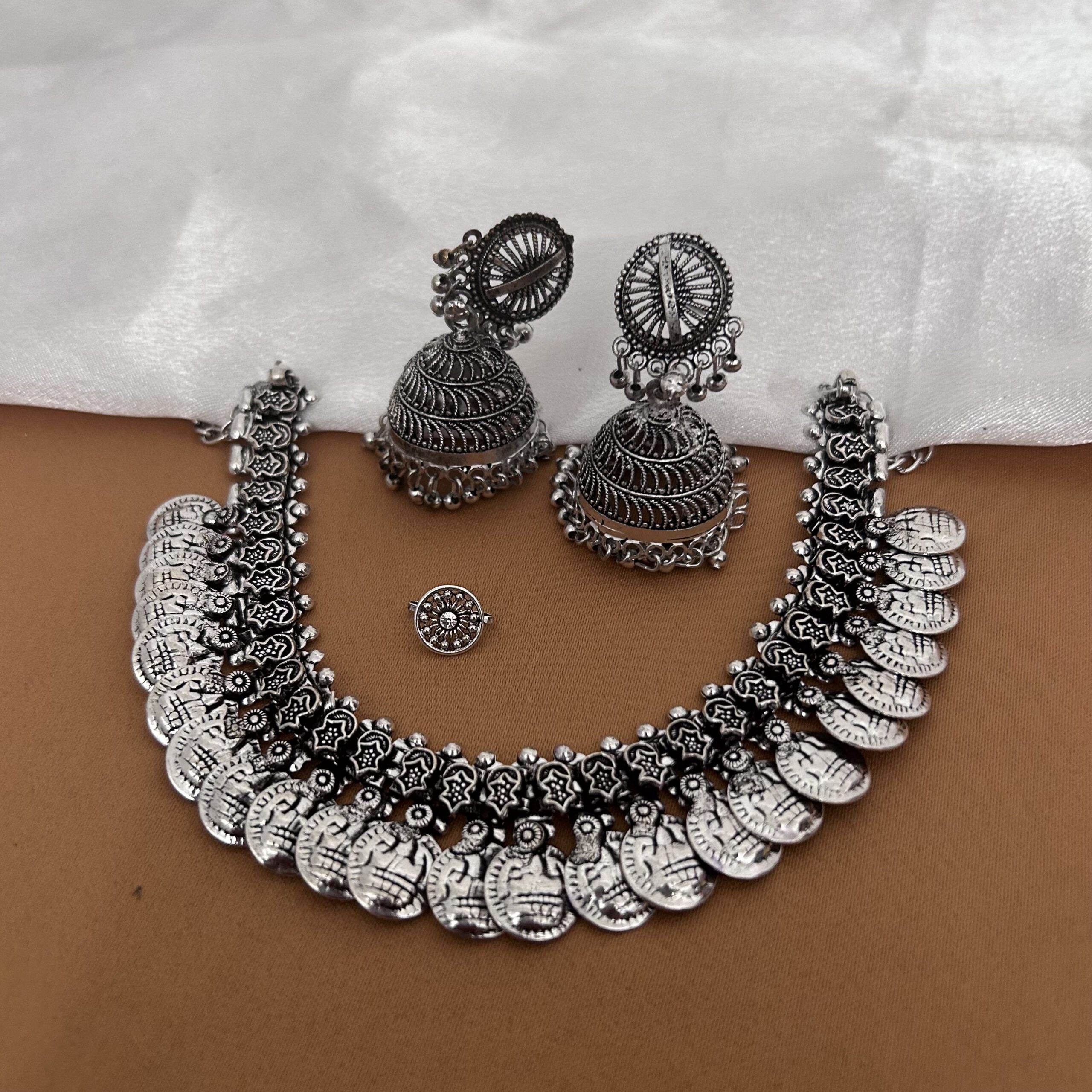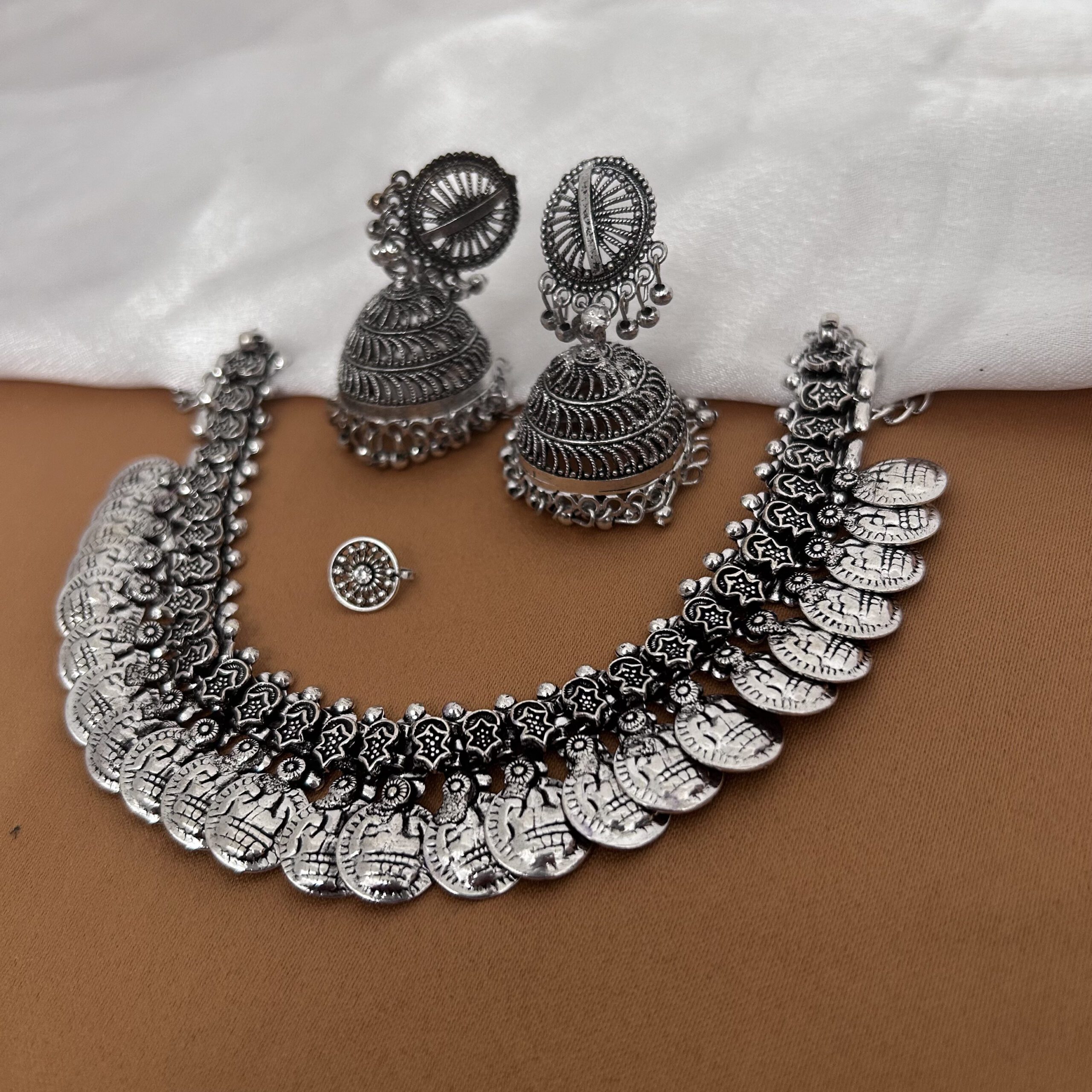 Oxidised Necklace & Jhumka with Free Nosepin