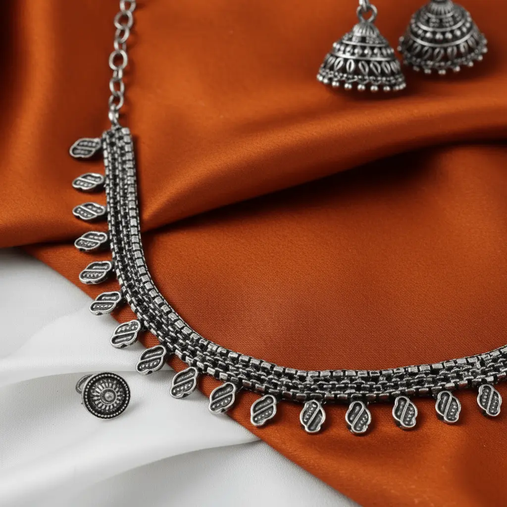 Oxidized Neckalce and Jhumka with Free Nose pin
