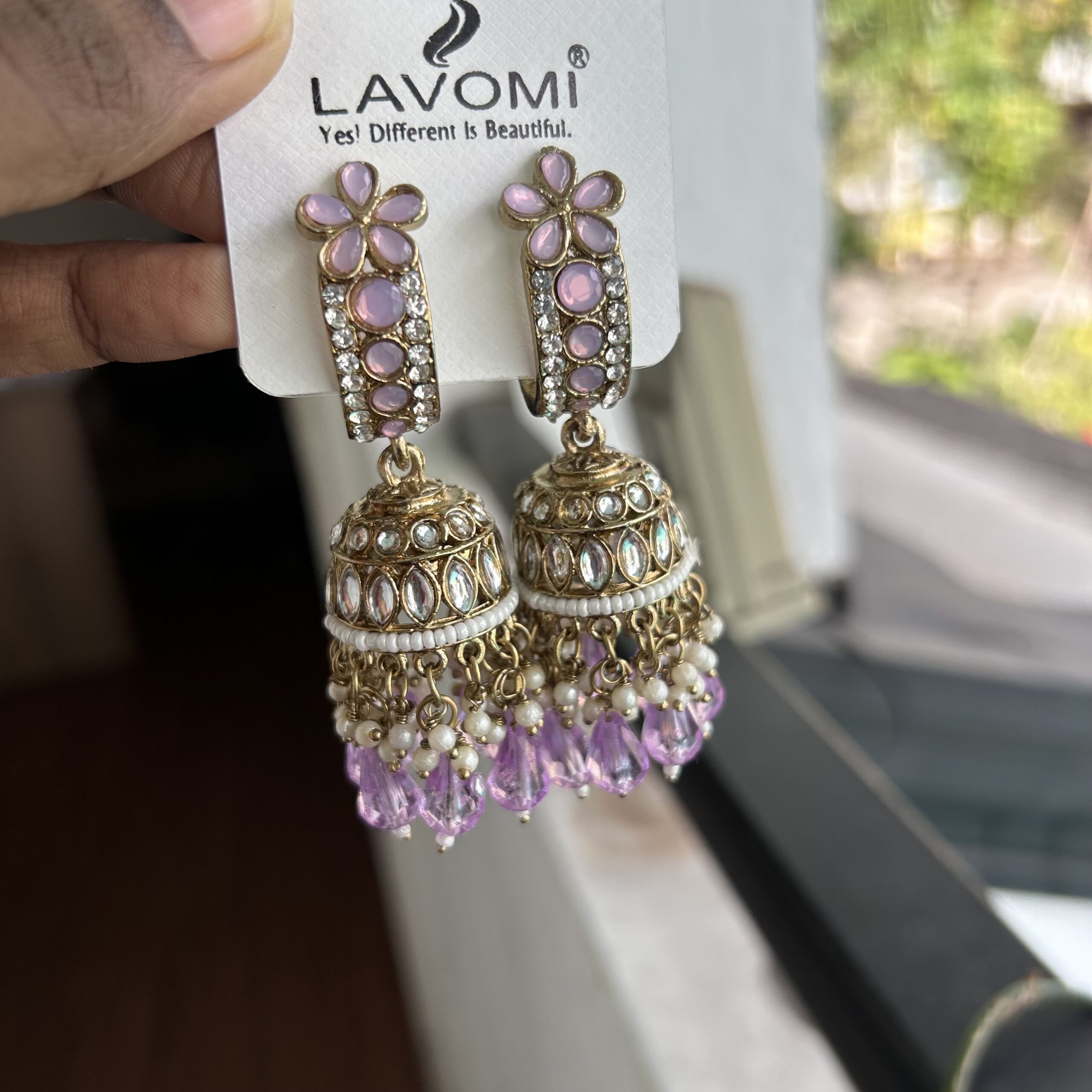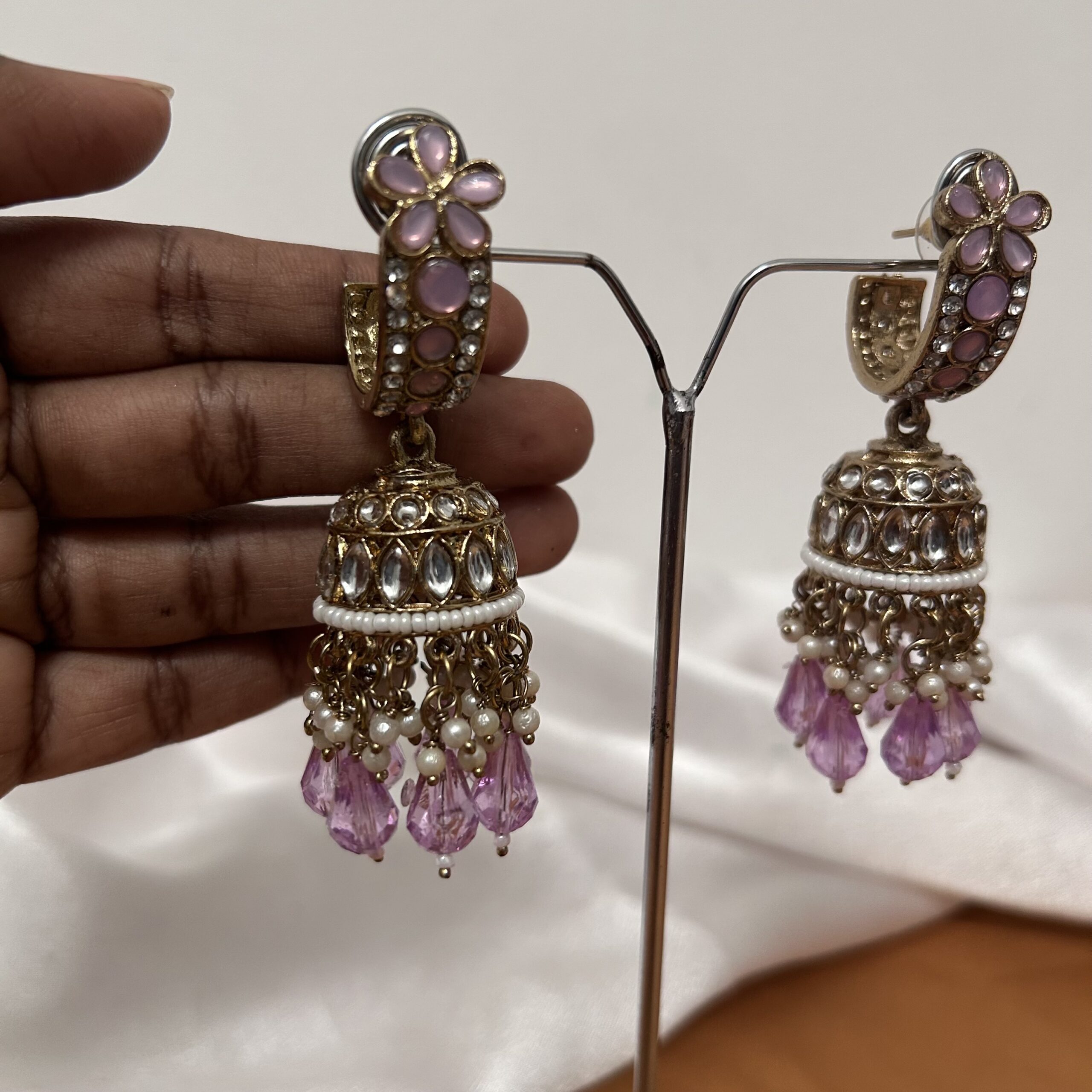 Purple Jhumka with Stones