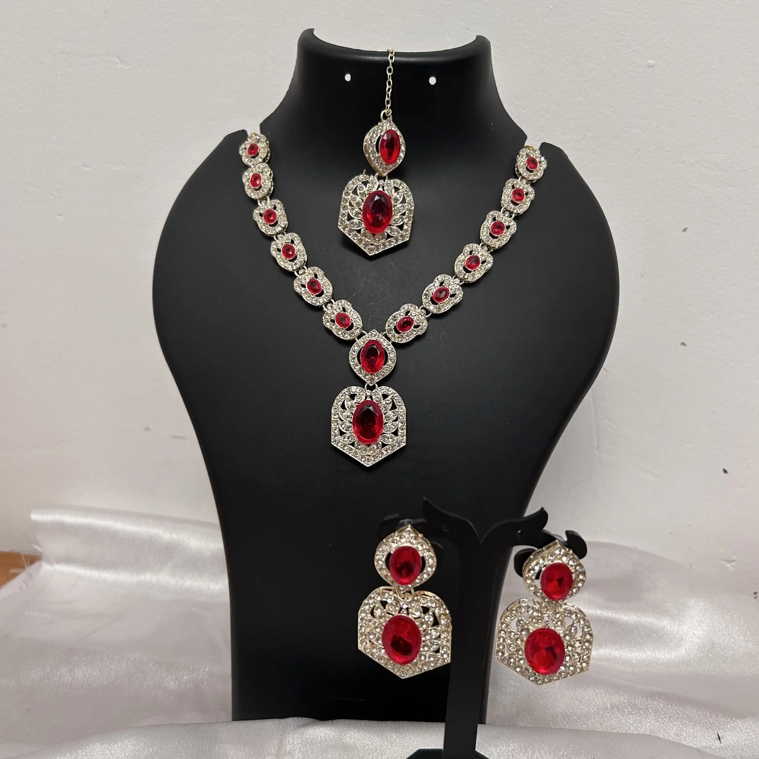 Red stone Necklace with Earrins and Tikka