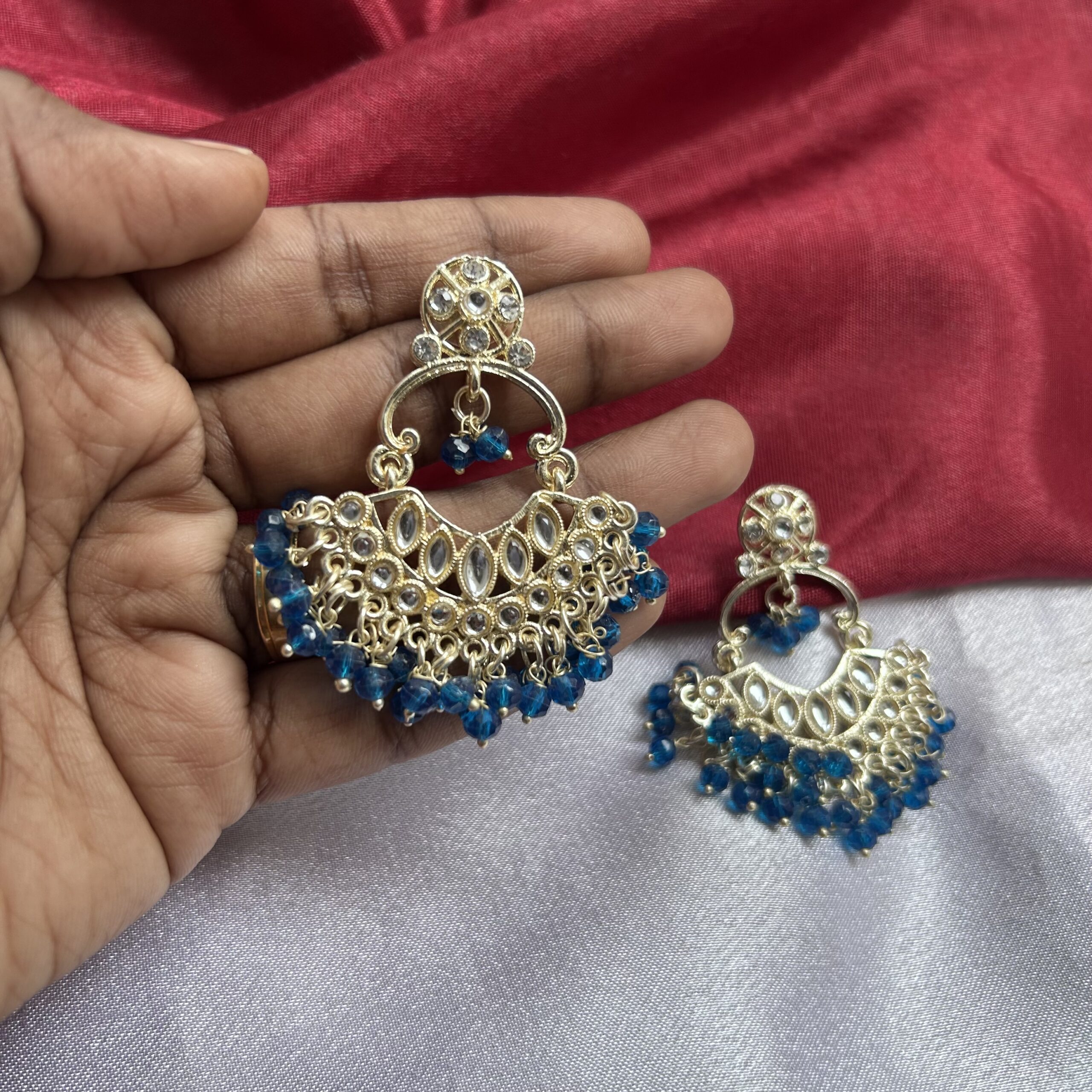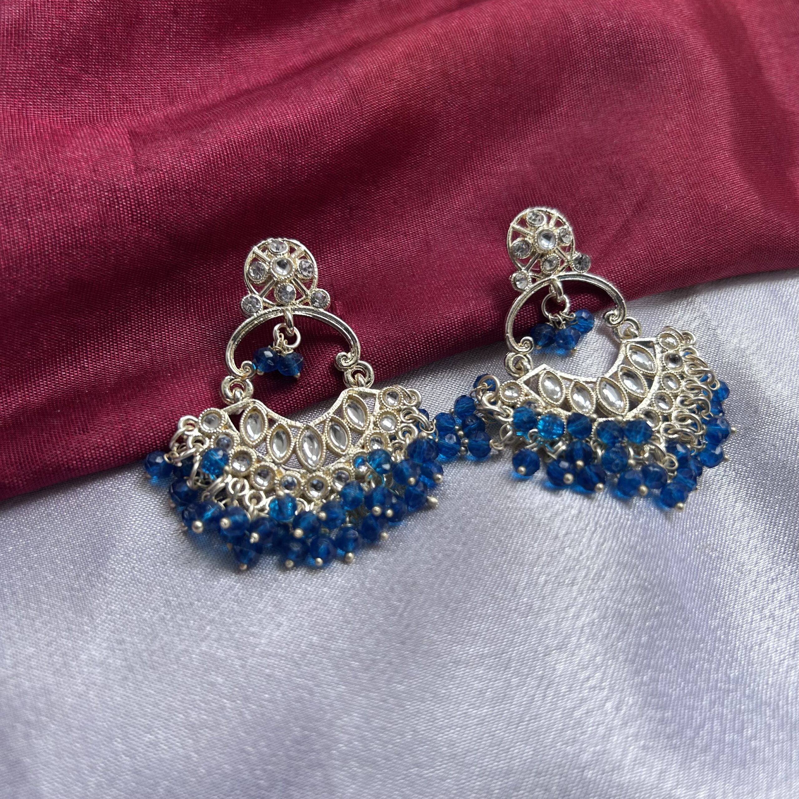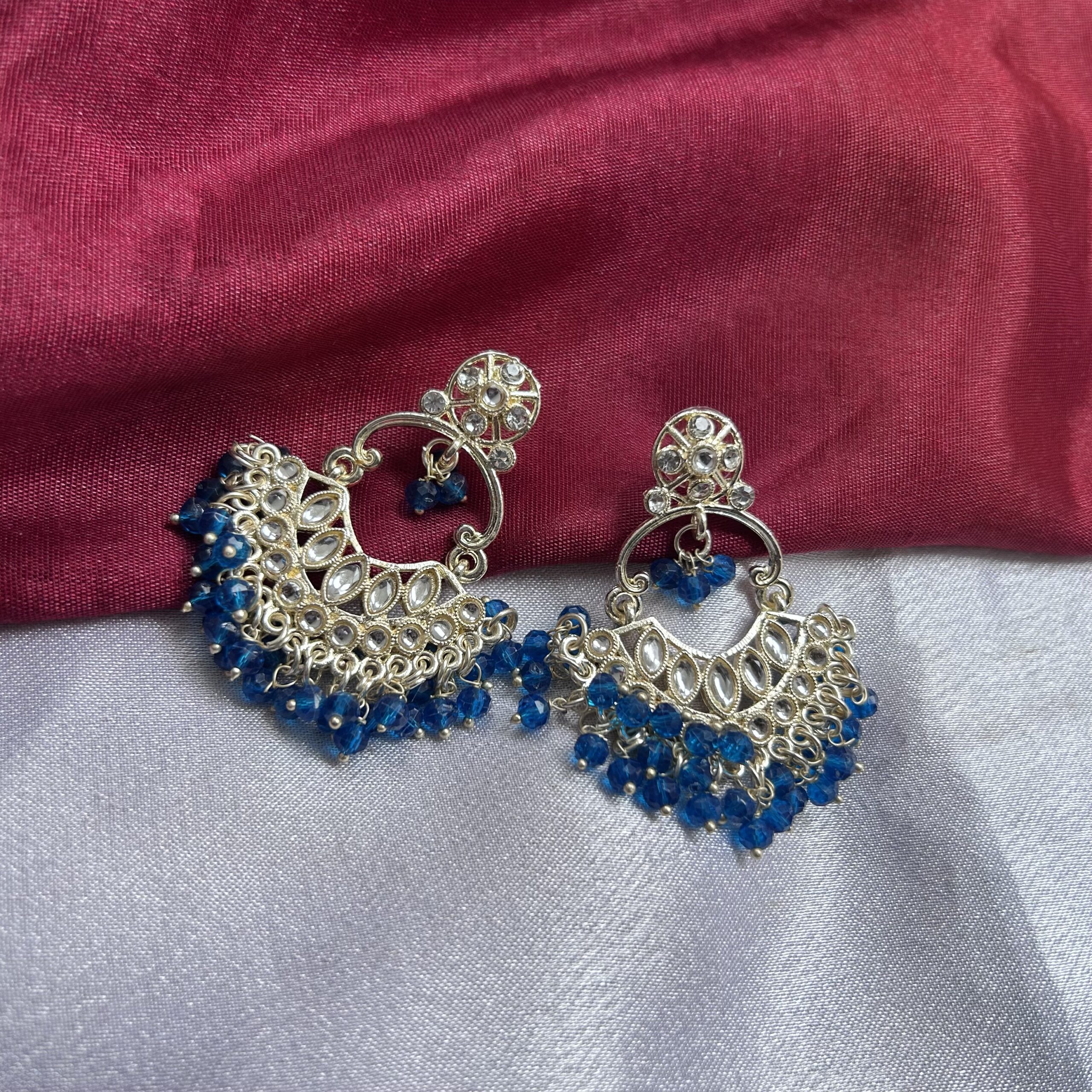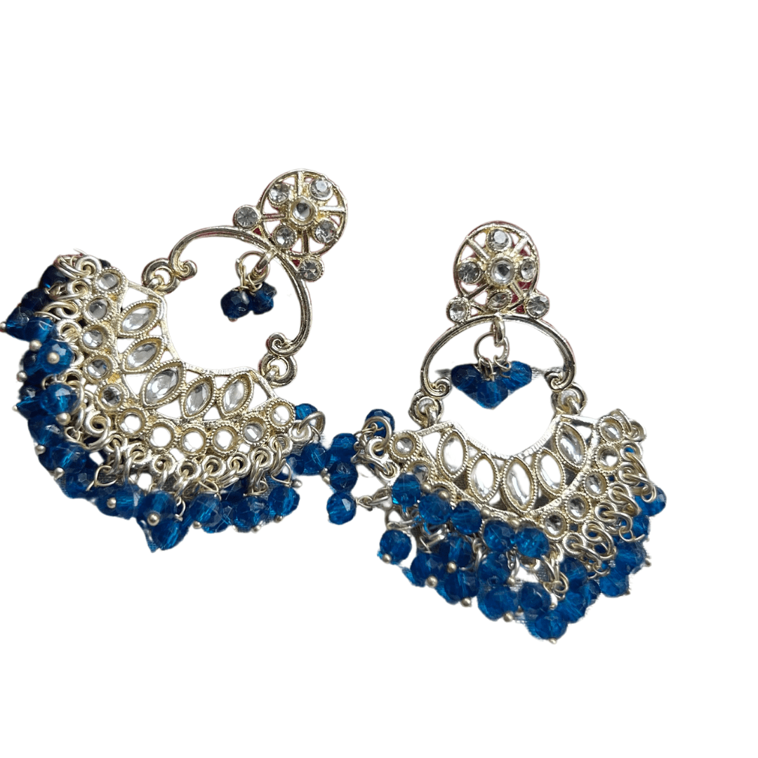 Royal Blue Beaded Kundan Earrings