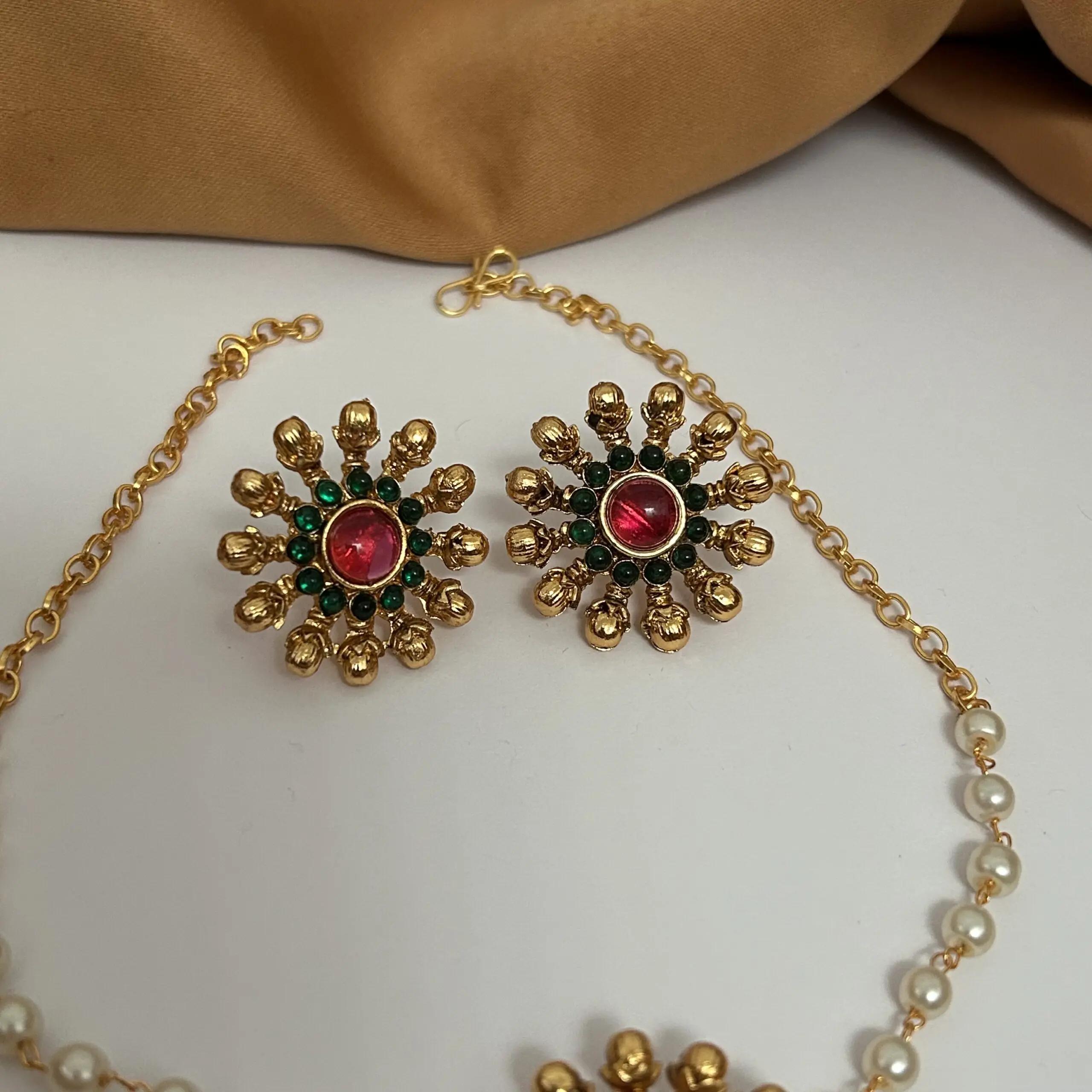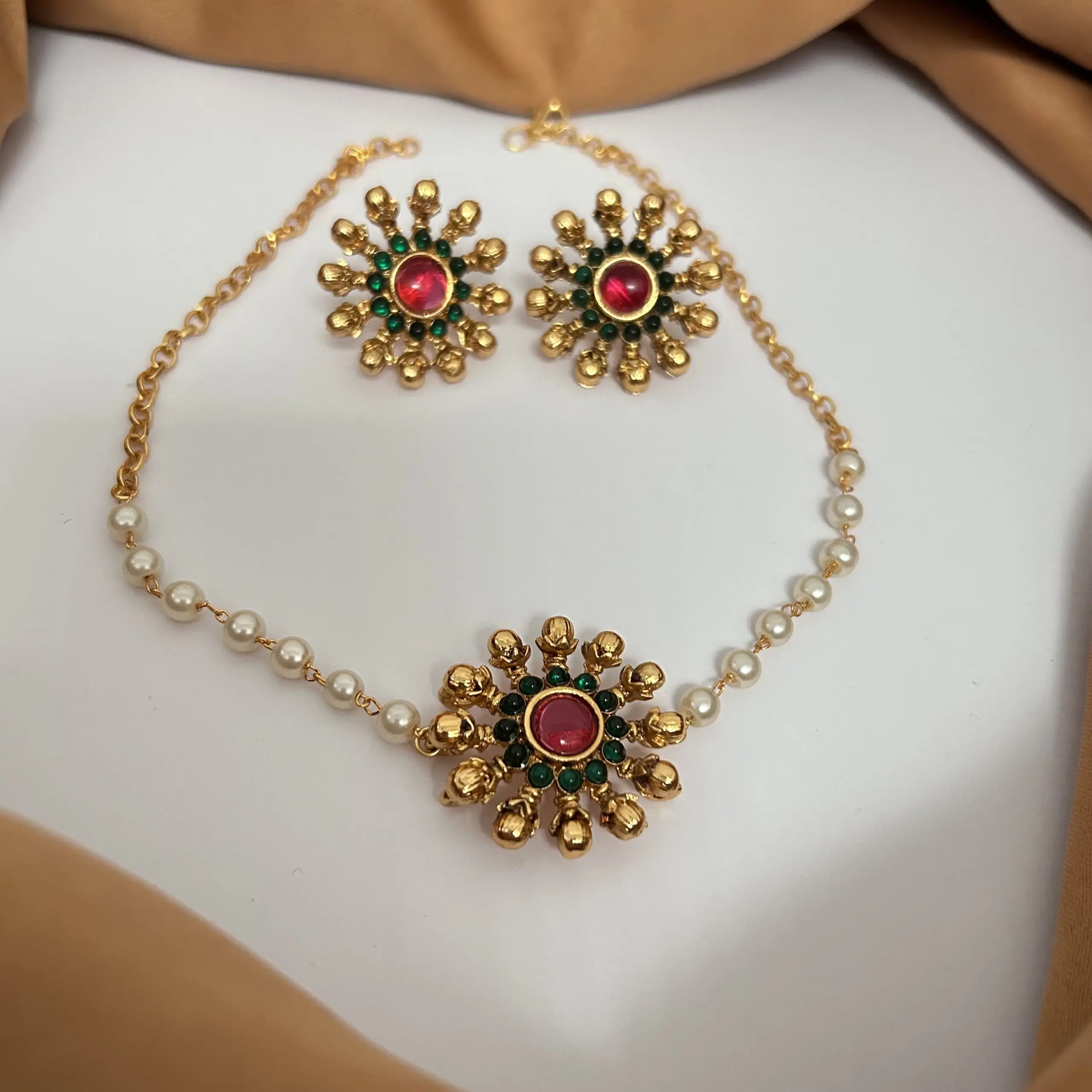 Single line Pearl Necklace with Earrings