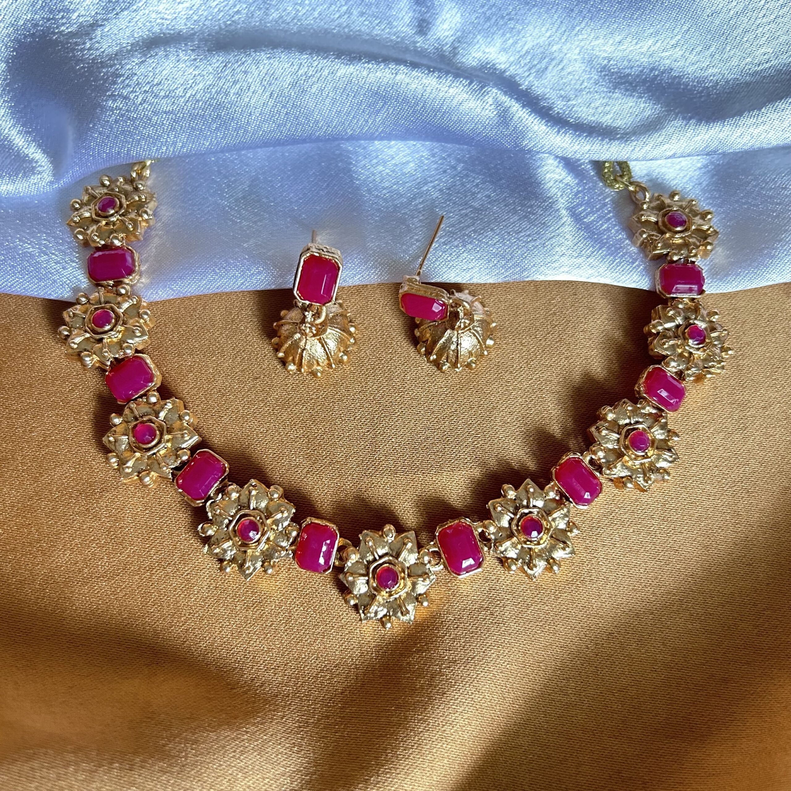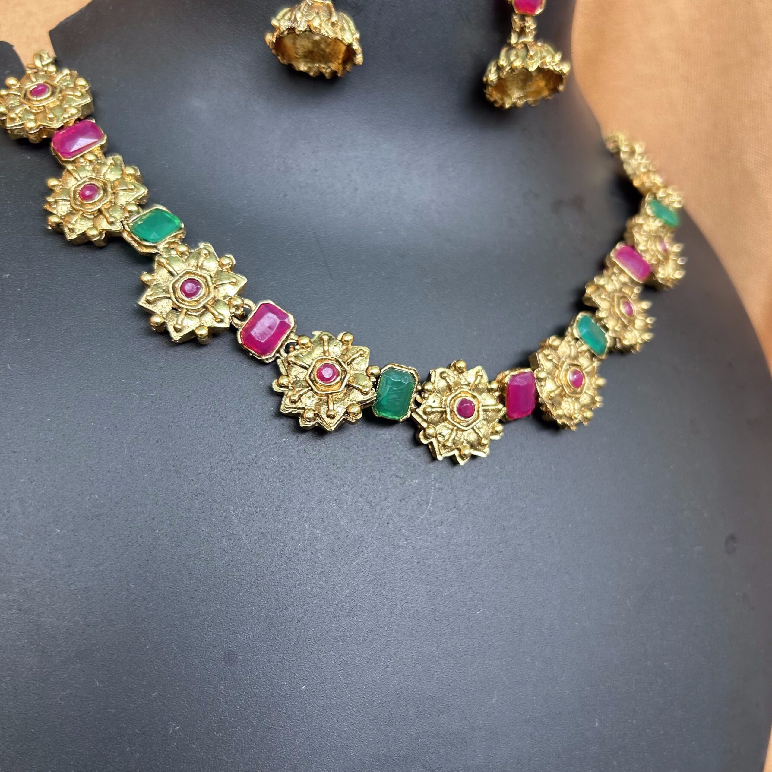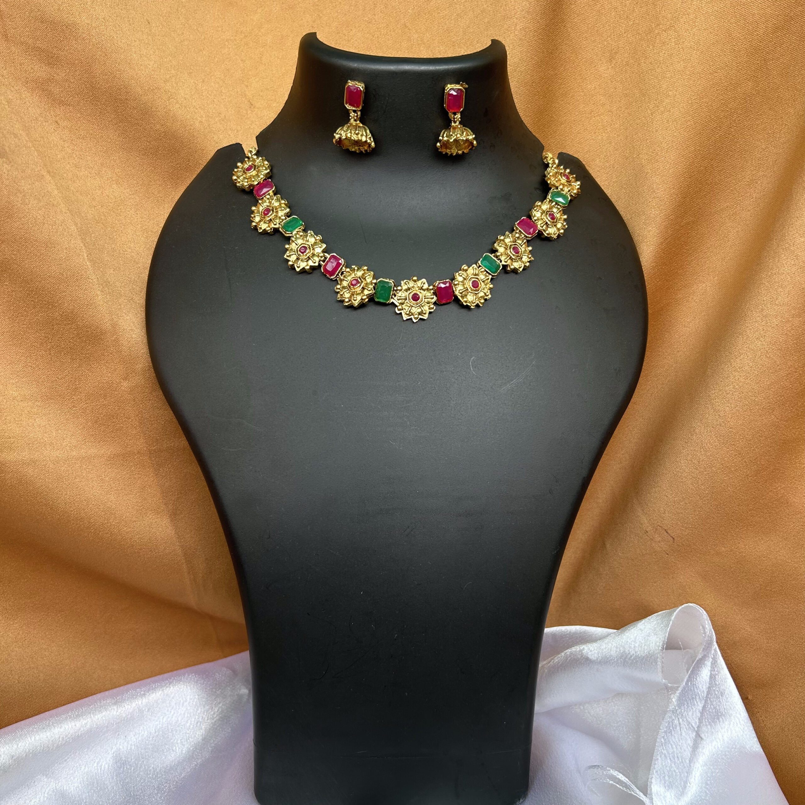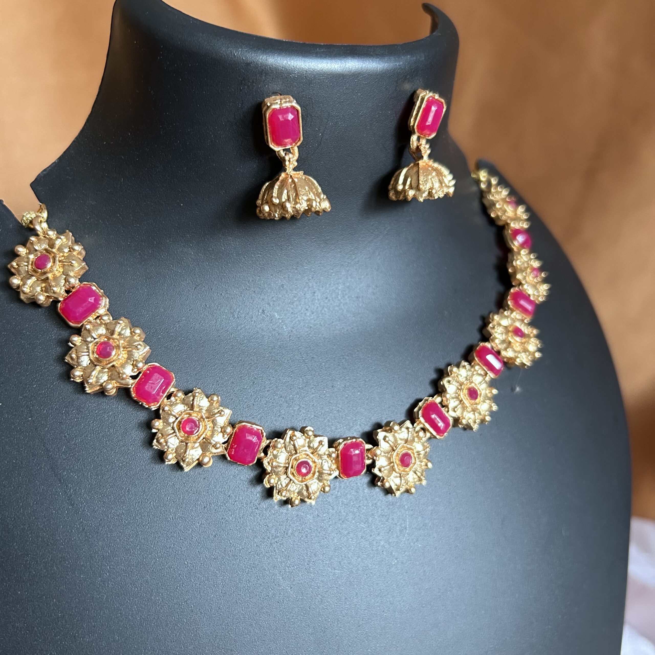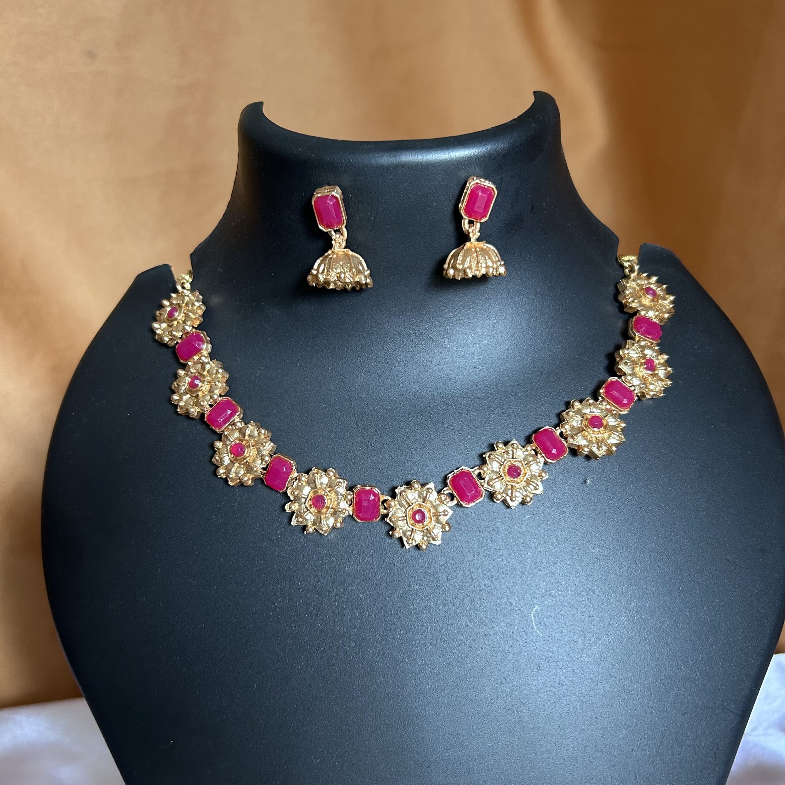 Stone and Floral Design Necklace with Jhumka