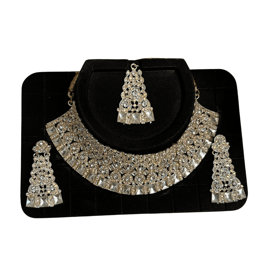 White Stone Bridal Necklace Set with Tikka