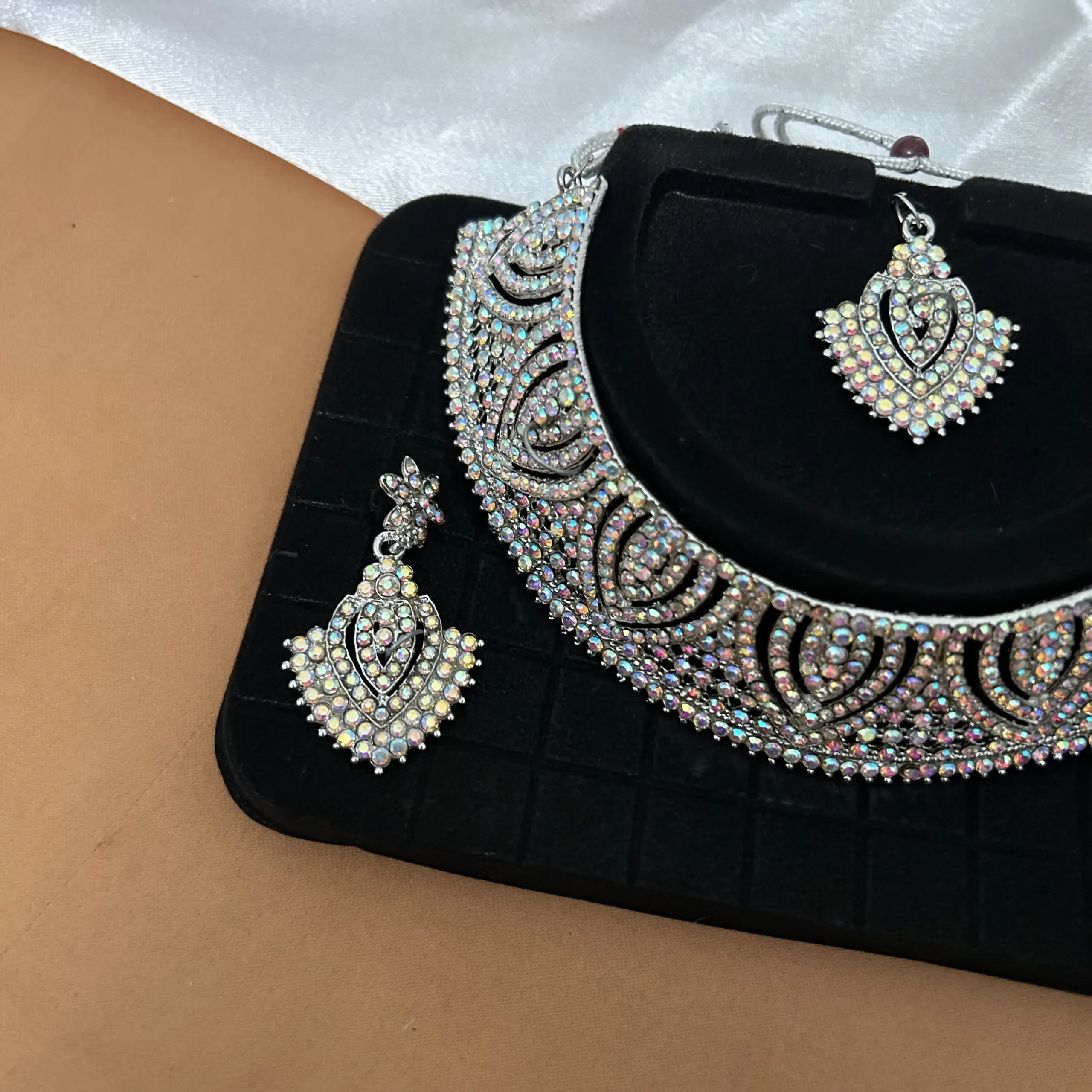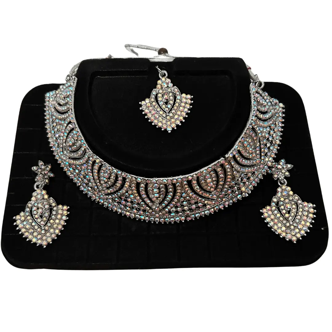 White stone Necklace set with Earrings and tikka