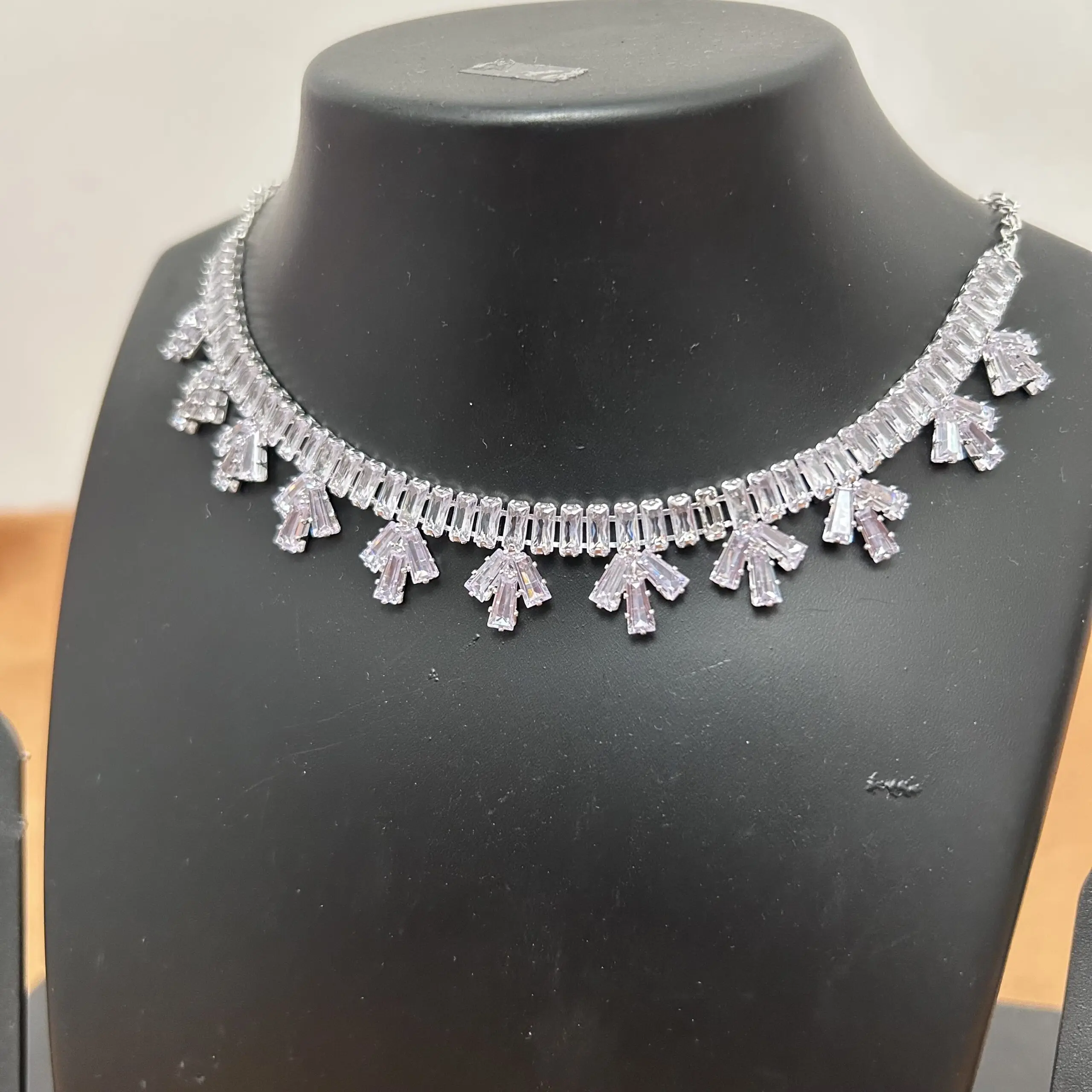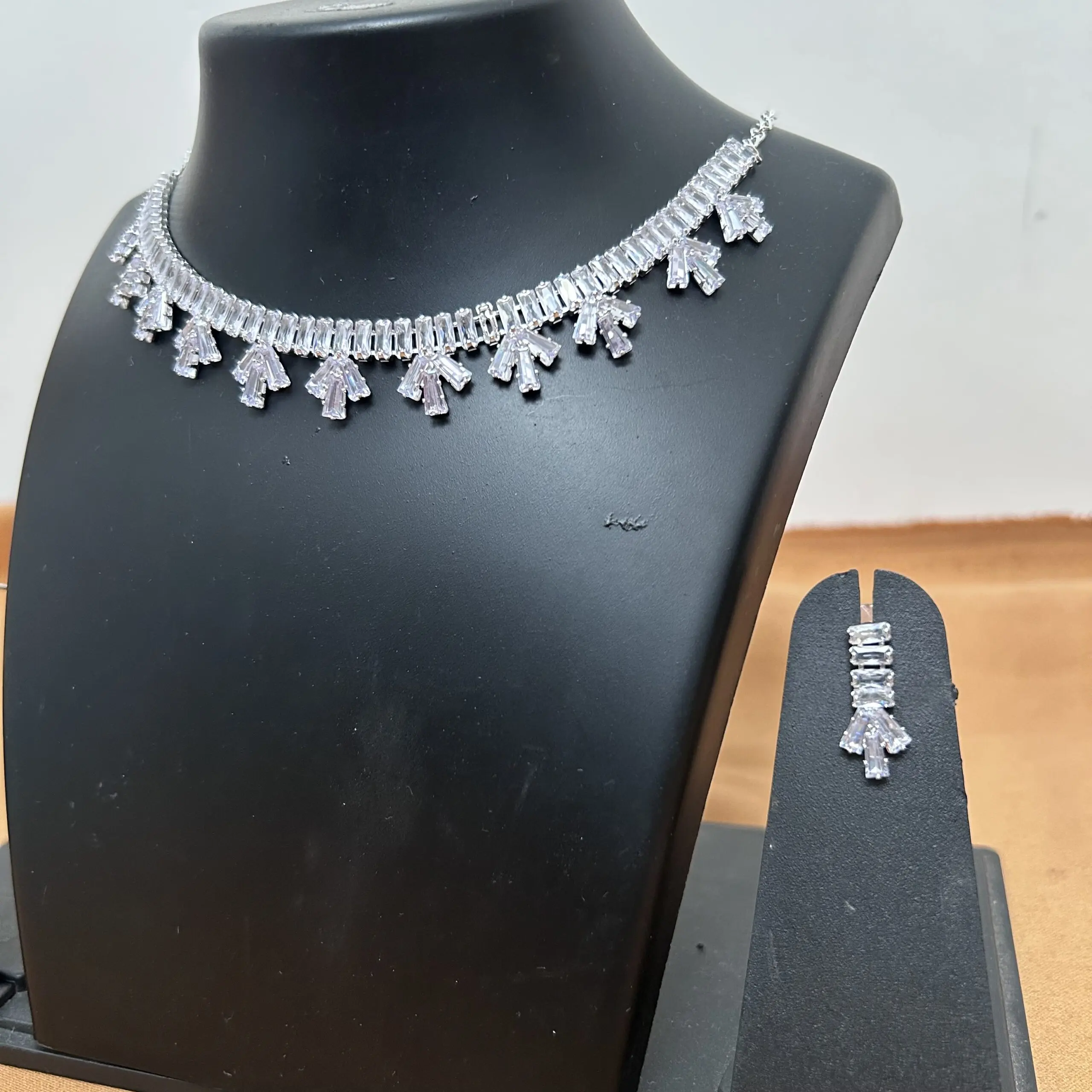 White stone Simple Necklace with Earrings